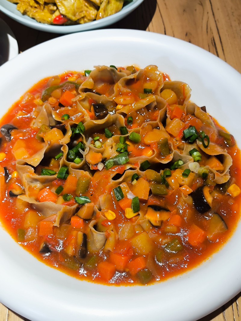 剔尖面条细长滑爽,搭配着各种臊子和调料,味道十分美味。而将其与栲栳栳搭配在一起食用,更是别有一番风味。栲栳栳的筋道与剔尖的滑爽相互映衬,使得这道面食组合成为了平遥美食中的一道亮丽风景线。