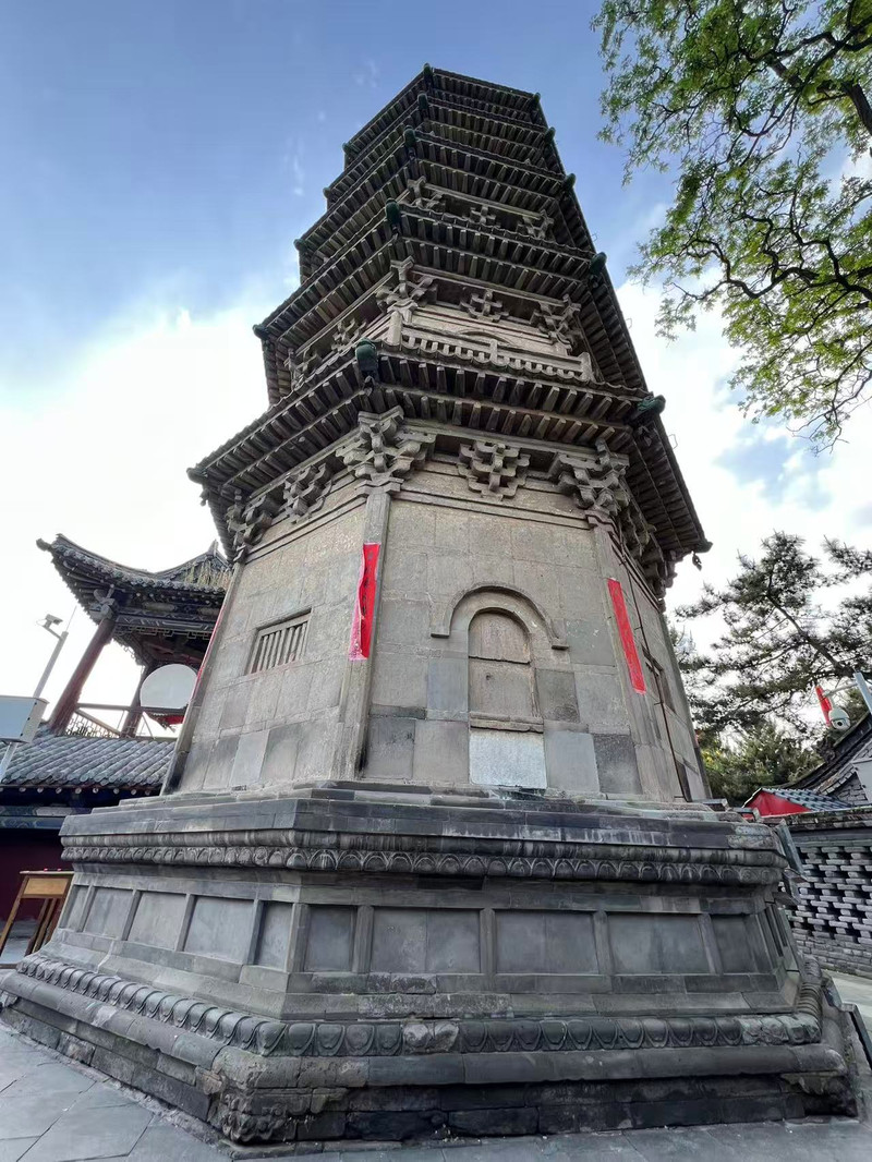 寺前一对八面石经幢,高约3米。须弥式圆形基座,四周浮刻仰覆莲花瓣,图案清晰,刻工精细。幢身为八面八角开,第一层阴刻楷书“尊胜陀罗尼经”、“金刚若波密经”,由禅院住持僧道贞书。幢项六坡水式,圆形宝珠项。幢刻制于北宋开宝三年(970年)。