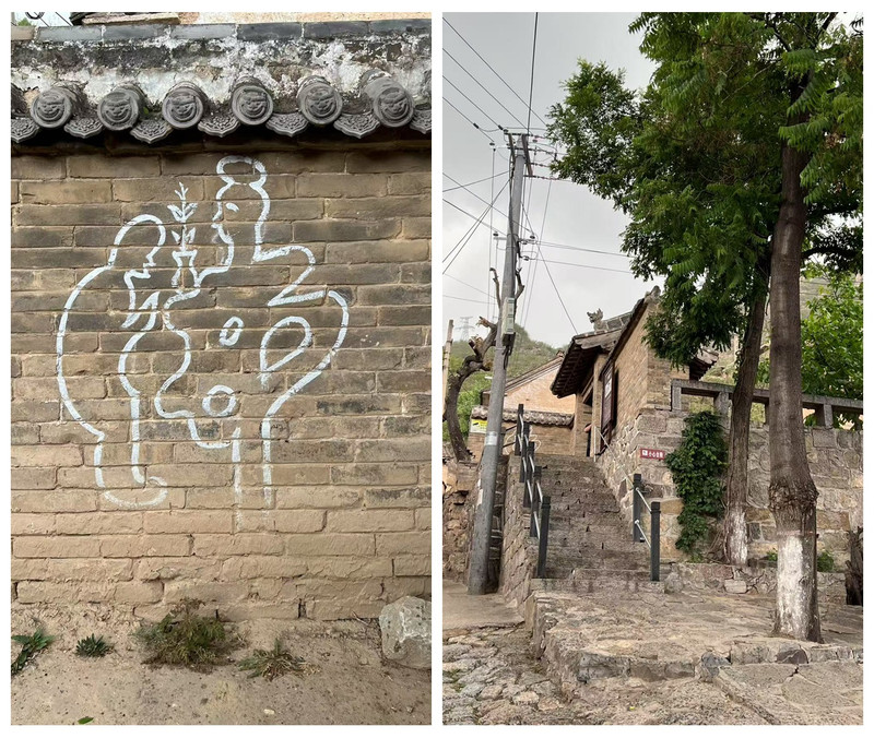 此时天阴了下来。我们看到有个小庙,走近才知道是药王庙,大门锁着。此庙创建年代不详,现存建筑为清代遗构。中轴线由南向北依次为影壁、山门、正殿,两侧为东、西厢房。该庙保存较好,布局完整。