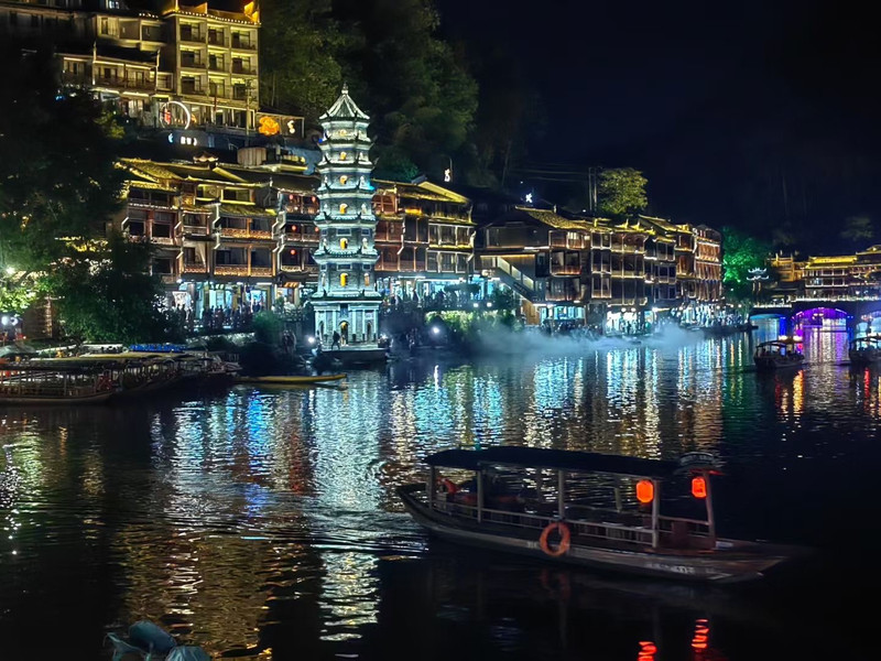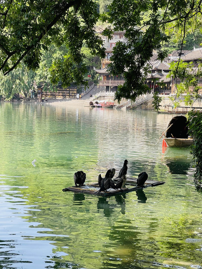 「一泓沱水绕城过」——沱江作为母亲河贯穿古城,形成临江吊脚楼群与万名塔等景观,泛舟江上可感受沈从文笔下《边城》的水墨意境。