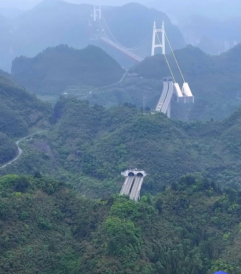 后赴世界十大非去不可的网红新地标——【矮寨悬索大桥景区】,它被评为世界上最美的大桥,大桥垂直高差达355米,主跨度1176米,车行在矮寨大桥上,低头是幽深的大峡谷,潺潺德夯河水经流而下,犹如在云中漫步一般。