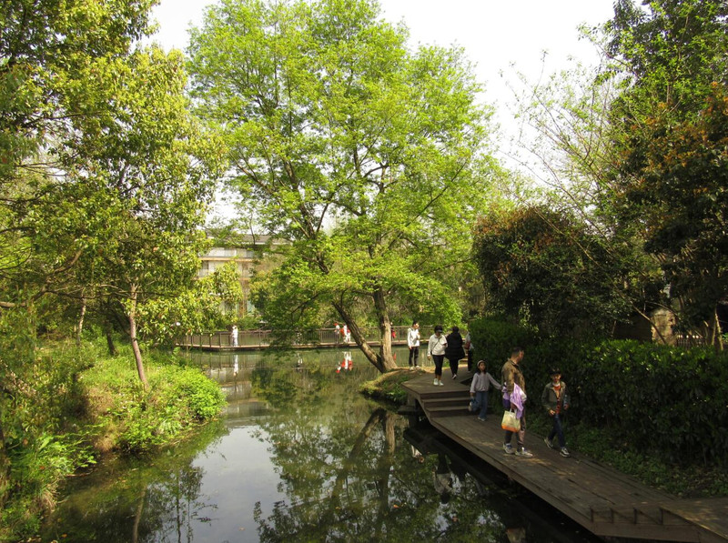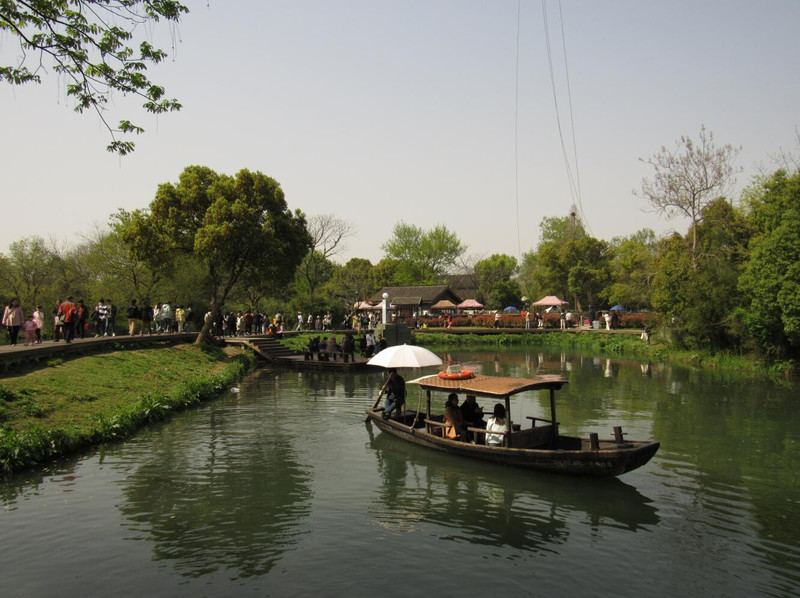 - 西溪湿地放弃热气球,改乘摇橹船穿越芦苇荡。