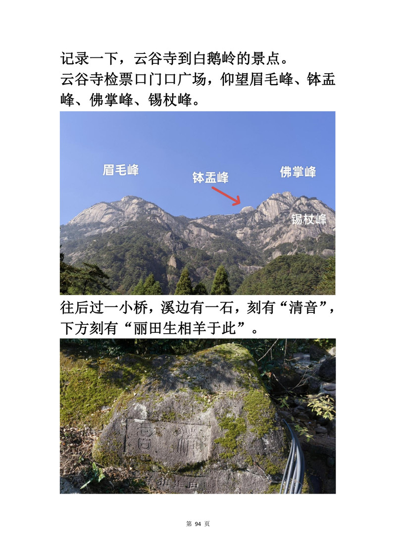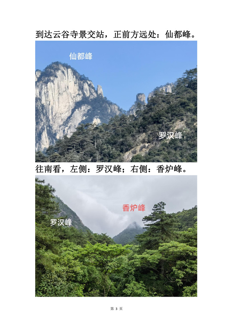 抖音短视频3.0版连载之十五(2024年6月22日发布):3.0版本(最终版)共计352页,统计有486张景点照片、5张路线导览地图,罗列217个怪石、89座山峰、53株名松、36个观景台(亭)、40处洞、桥、坡、栈道、3个瀑布(泉)、3个塔,共计441个景点