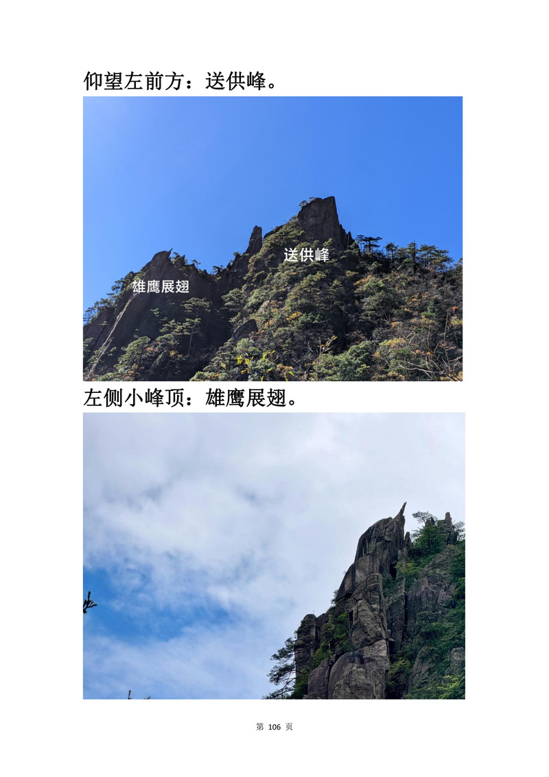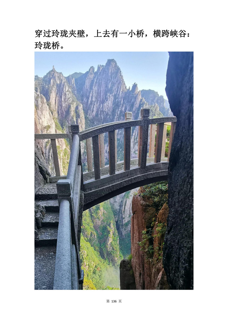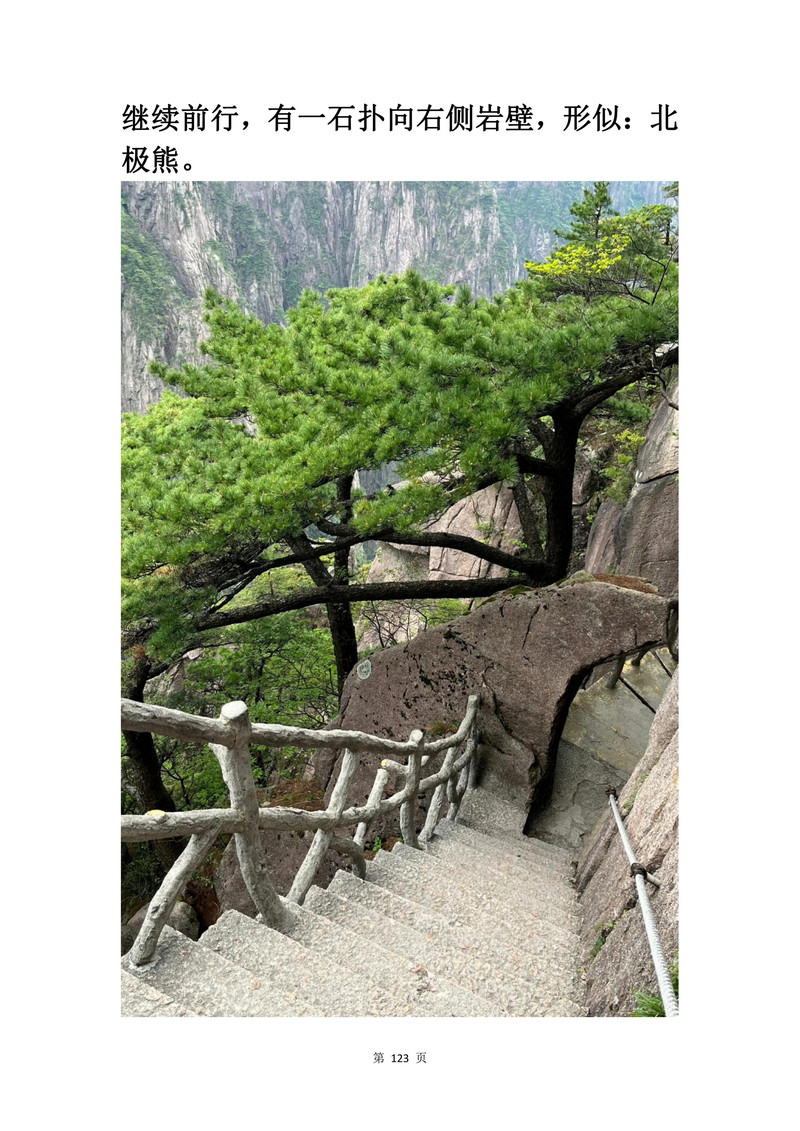 3.0最终版(抖音短视频2024年6月信息)共计352页,有486张景点照片、5张路线导览地图,罗列217个怪石、89座山峰、53株名松、36个观景台(亭)、40处洞桥坡栈道、3个瀑布(泉)、3个塔,共计441个景点