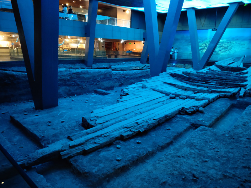 后面的展厅可以看见古船的遗迹,出土的四艘古船是博物馆的核心内容。