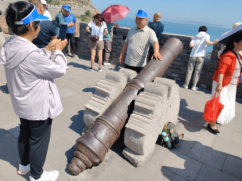 东炮台这里是绝好的观景点。可以远眺旁边的八仙过海景区和蓬莱海水浴场。清代的铁炮。看起来没有17年春节在厦门胡里山炮台看到的庞大而威猛。