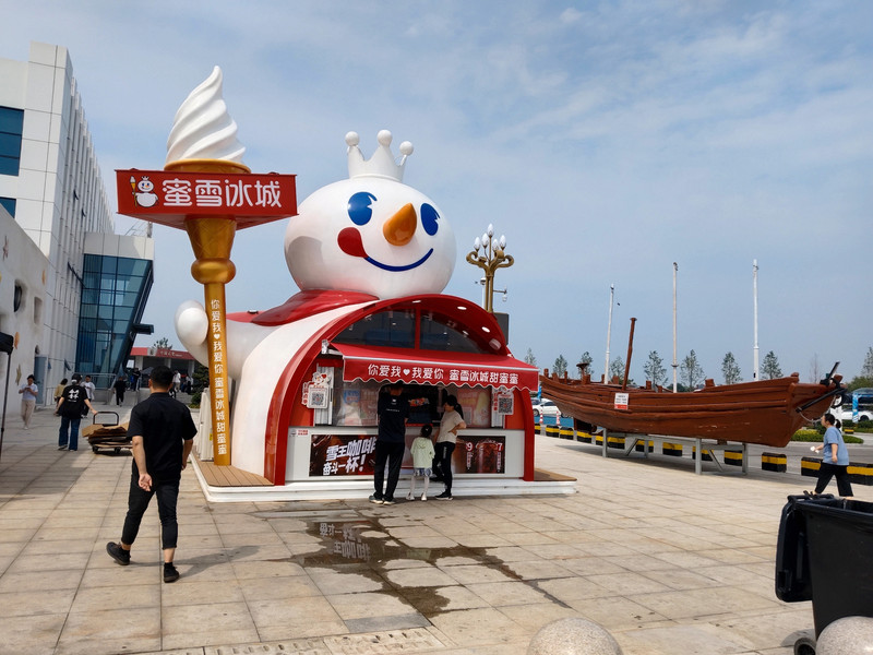 沿途走过来,好几个卖鲜榨青岛啤酒的摊位,都是拿瓶子现场灌装的。买了一瓶老婆和儿子喝了几口,说很好喝!我还要继续开车就没喝。准备晚上到了蓬莱的酒店再品尝。