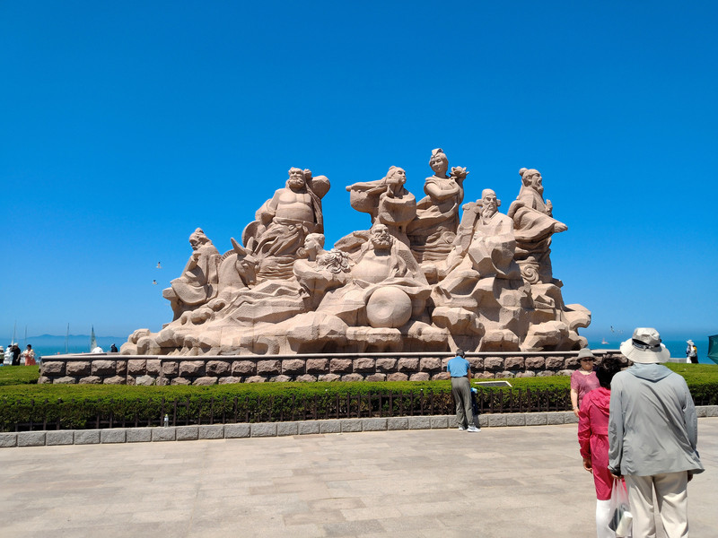 购物广场开过去不远是蓬莱沙滩。停车场进去就是十块钱,没有免费时段。这座栩栩如生的八仙群雕挺精美的。