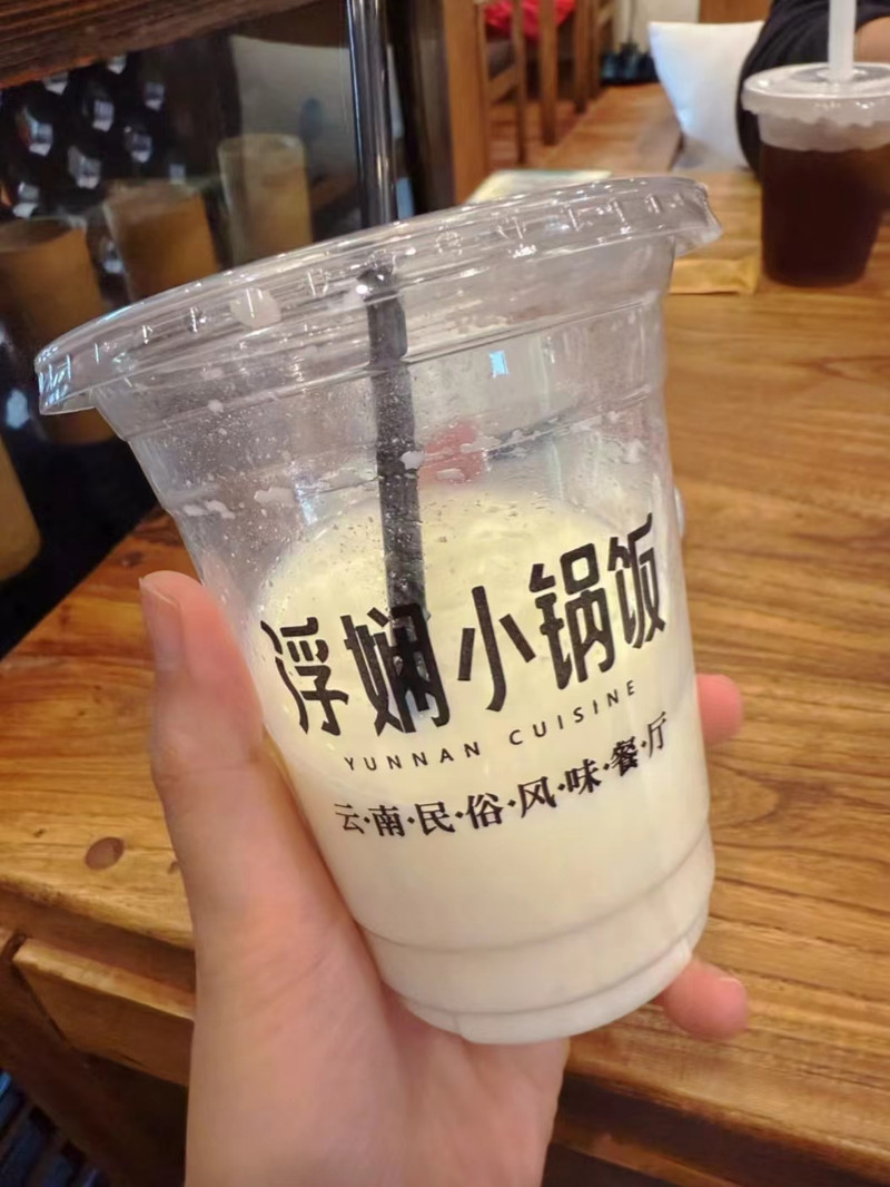 丽江束河古镇这家美食排队吃的,真心值得,菜的味道很不错,环境也很喜欢。特别爱这个奶白酒,一下子喝半杯。烧菌菇也特别好吃,很香。小锅饭也很香!配上红烧肉和包浆豆腐很不错!非常值得来试一下!
