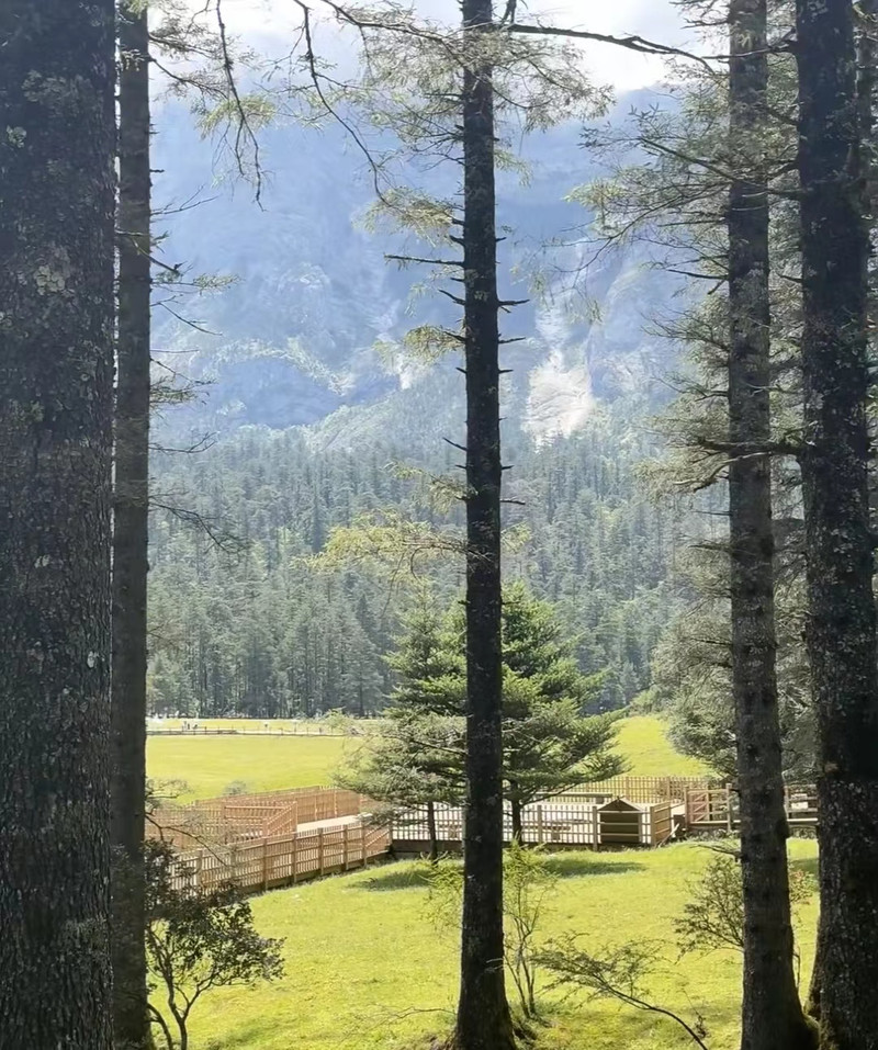 云杉坪在雨天仿佛闯入了一片抹茶森林,翠绿的树木和湿润的空气交织出一幅美丽的画卷。雨中的云杉坪更加清新脱俗,给人一种宁静的感觉。