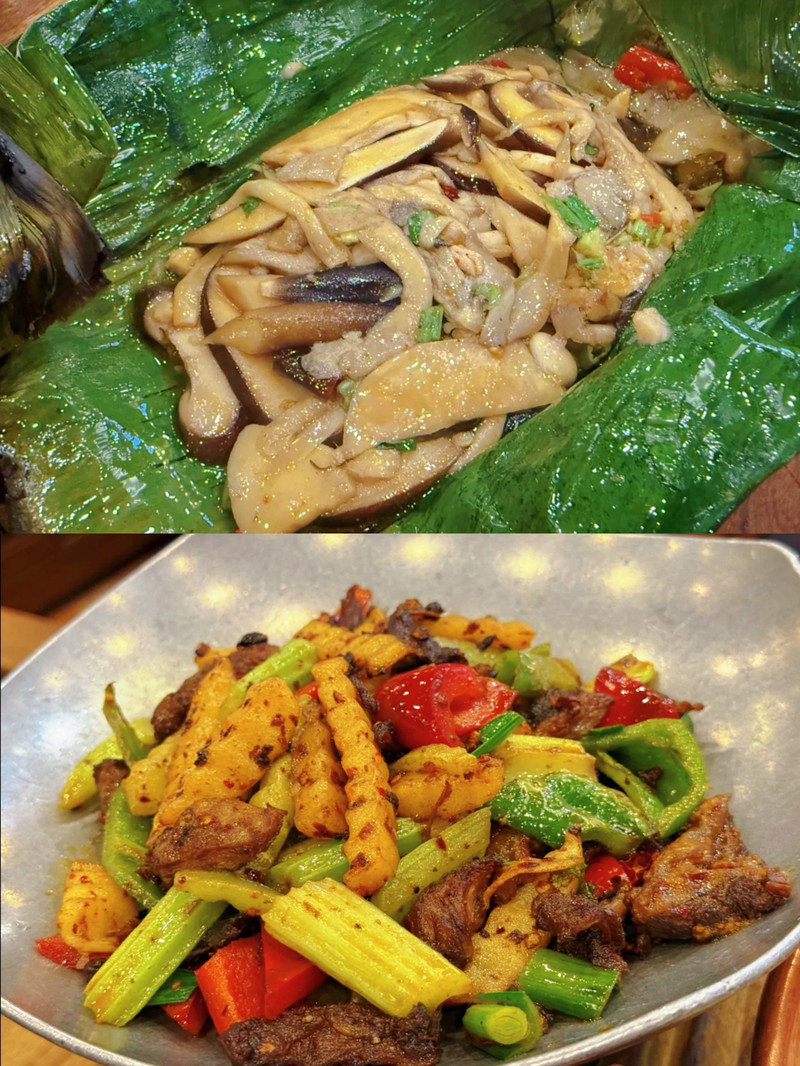 束河古镇有许多美食值得尝试。这家排队吃的餐厅确实值得一试,菜的味道很不错,环境也很有特色。特别推荐奶白酒、烧菌菇和小锅饭,配上红烧肉和包浆豆腐,味道非常棒!