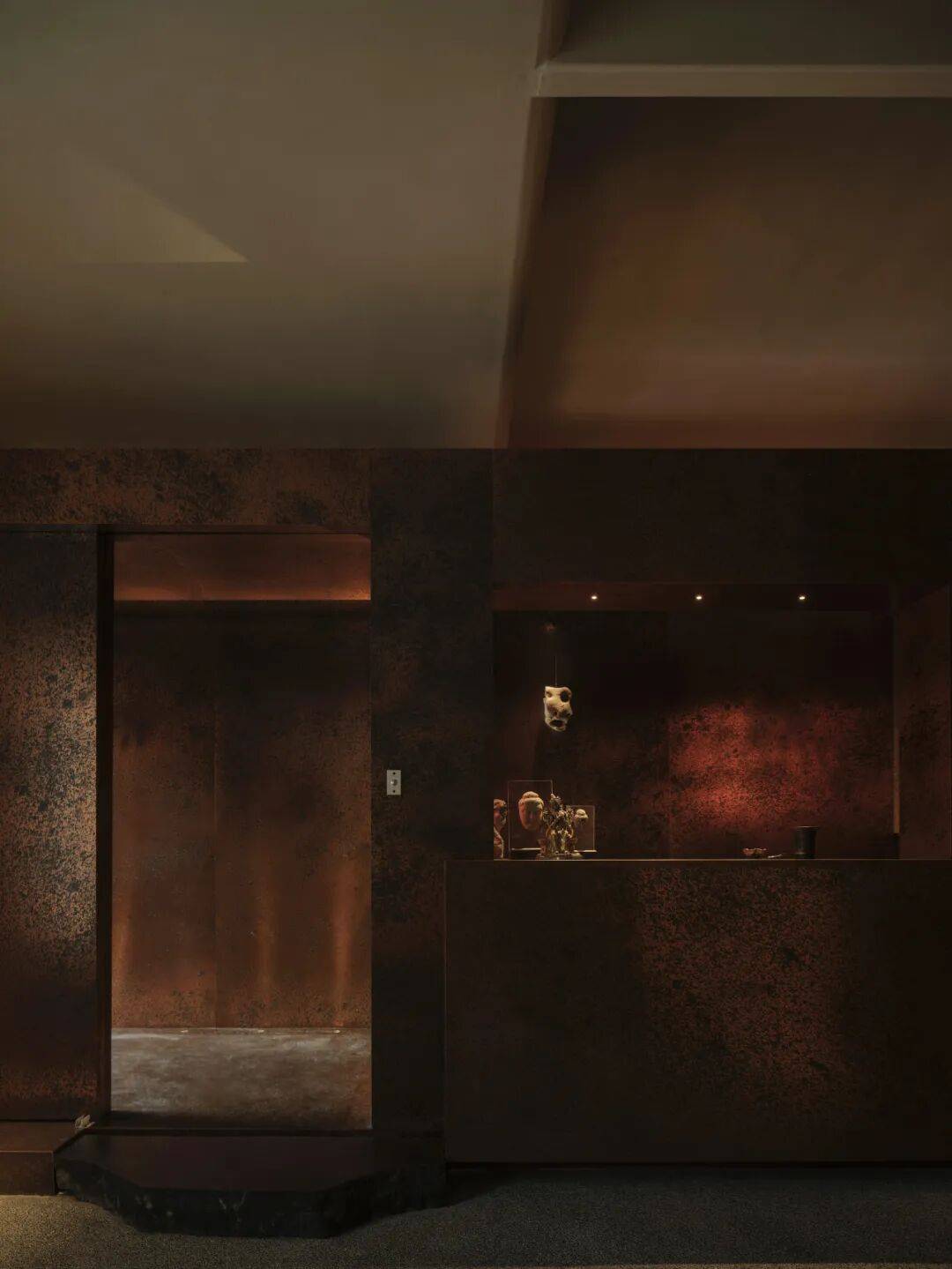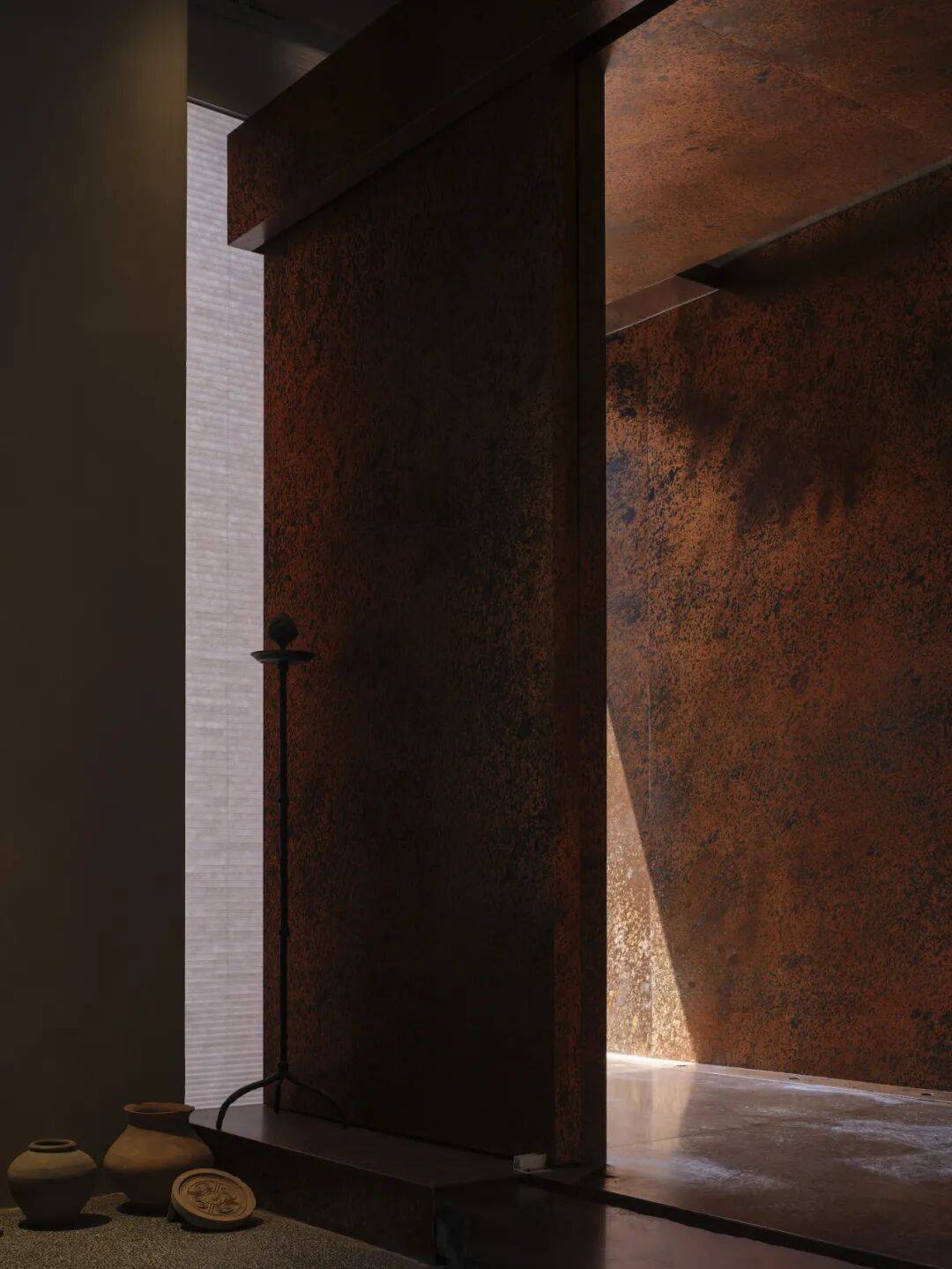- 层次感:通过红铜盒子、黑色木头区域和黑青石过渡区的设置,空间形成了丰富的层次感,参观者在游走过程中能感受到不同的视觉和触觉体验。