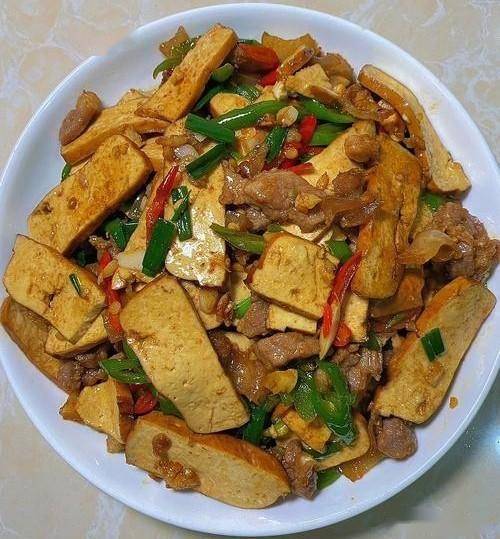食材:香干、瘦肉、葱、蒜、小米辣、豆豉、豆瓣酱、菜籽油、老抽、鸡精