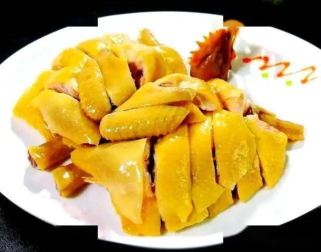 5. 将鸡切成小块装盘,用葱姜、盐、香油等调制一个蘸料,即可享用。