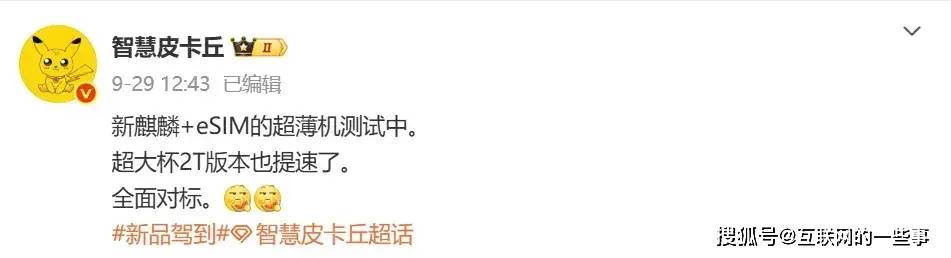 近日,博主@智慧皮卡丘透露,一款搭载全新麒麟芯片和eSIM功能的超薄手机正在测试中。这款新机最高提供2TB存储,目标直指苹果iPhone Air。