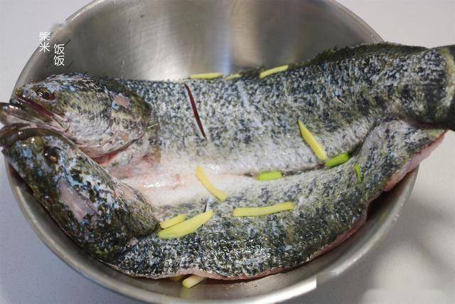 1. 处理黑鱼:黑鱼处理干净,让卖家从背部切开。表面切花刀方便入味,然后加入葱姜、盐,里外都涂抹均匀,腌制30分钟。