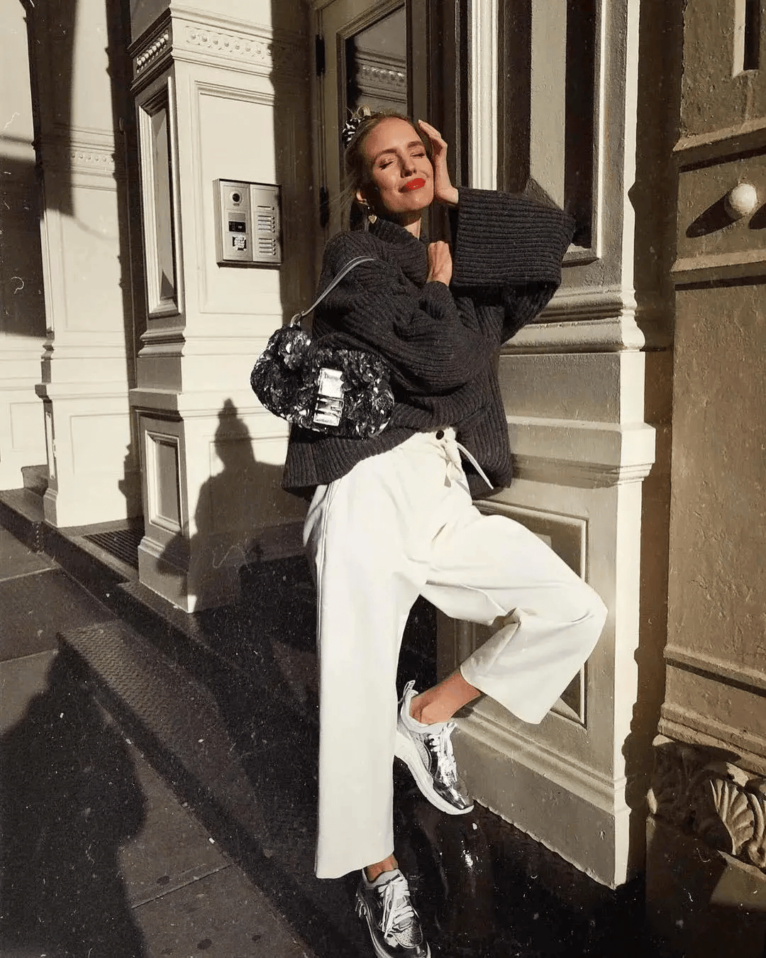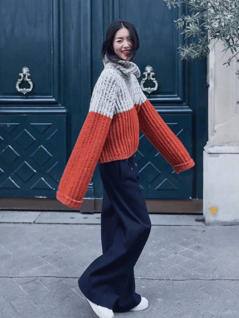 “毛衣+阔腿裤”,是早秋的时尚选择,