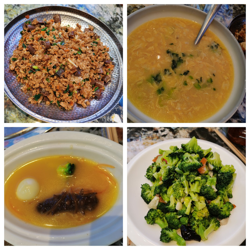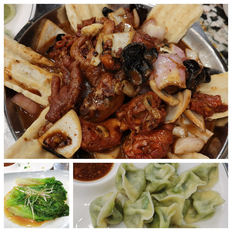 第一天中午和第一天晚上吃饭都是在小区附近的御尚鲜海鲜市集餐厅,这是一家CCTV报道过的连锁店。小区门口都是大大小小的海鲜排档,唯独这家高朋满座,所以说媒体运作的力量还是巨大的。这家店价格合理,味道还行,服务态度特别好。第一天中午吃的海肠捞饭79,海鲜疙瘩汤29、炒素西兰花25,还有一个19.9团购的金汤翅丝捞汁活海参。这个海参特别好吃,其他菜都是中规中矩。晚上水乐园回来洗完澡已经11点了,这家是12点关门,点了生炒小公鸡配锅贴59、韭菜鸡蛋素水饺19和罗马生菜18。炒鸡入味旁边的饼贴也好吃,铁锅炖的感觉。韭菜鸡蛋馅的水饺比较少吃,这边好像许多菜都喜欢放韭菜,也觉得还不错。生菜很晚才端上来,一吃太咸了,于是退掉。山东的菜还是偏咸,有点重口。算上点评的优惠只要69块,性价比还是很高的。拿着上海的工资,在这边过日子很悠闲。