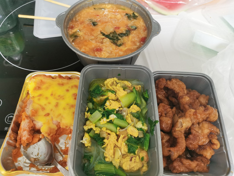 除了水饺,另外还点了一份外卖双保险,万达广场的吕氏疙瘩汤,属于非常有名的一家快餐小吃,专做疙瘩汤的。点了排名第一的海鲜疙瘩汤、小份糖醋里脊,小份渔民小白菜,里面是蛤蜊、鸡蛋、白菜汤。虽然都是小份但是在上海就是正常的量,还点了一个芝士烤红薯,可惜送到的时候已经冷掉了,没有吃到芝士的香味。如果酒店有微波炉就好了,可惜没有。点了这么多79.5价格是真的很便宜,日照的生活成本还是很低的,山东的菜量普遍量都很大。但由于下大雨,最后两家菜送到的都挺晚了,等了两个小时8点多才到。