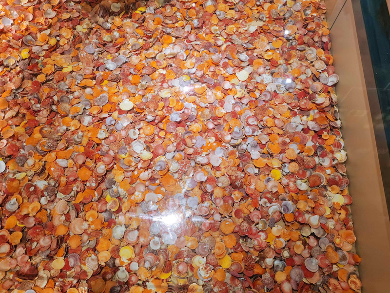 从东夷小镇出来,两只仔也不想去海边了,炎热的夏天只想回去空调房里待着,于是兔兔带他们去了贝壳博物馆。门票19.9每人,地方有点偏,里边有许多不同的贝壳,有海螺、扇贝和蛏子。许多是稀有的品种,发掘于世界各地,长得千奇百怪,看得出老板是用心收集的。印象最深的有菊花螺,身上一根一根的像刺一样,鱼骨螺也是一根一根的。还有一种螺特别善于伪装自己,会分泌一种胶水一样的粘液,把海底的垃圾,包括死掉的贝壳、甚至饮料盖都粘在自己身上,伪装成垃圾就安全了,还有爱心形的心鸟蛤也很漂亮。带孩子来这里长知识了,挺好的一个地方。