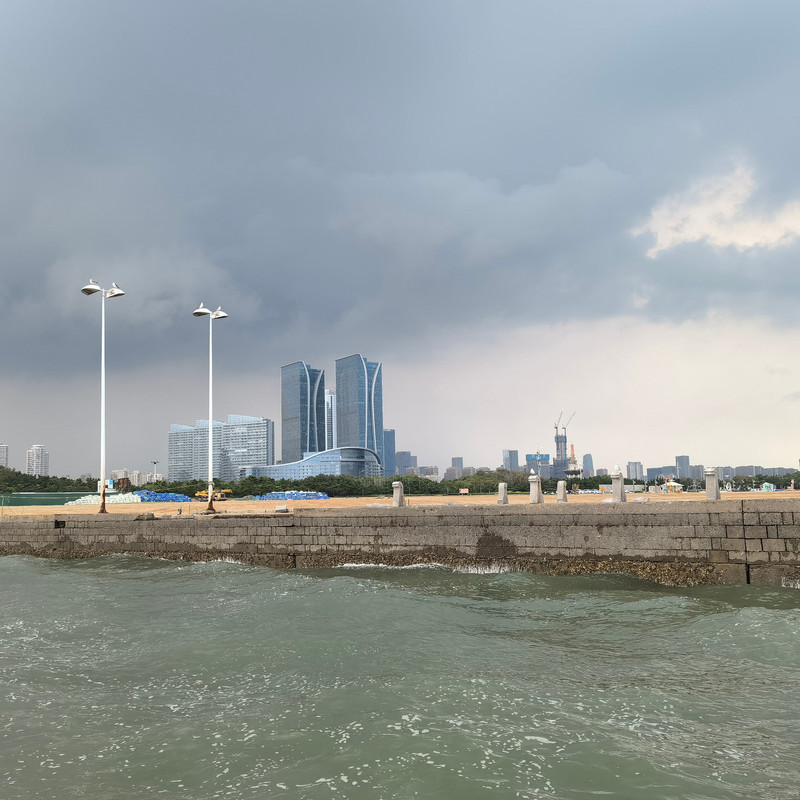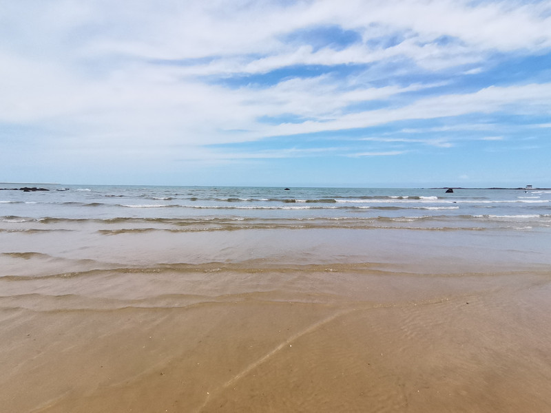 雨停了,太阳出来了,于是我们前往万平口风景区。万平口很大,是一个绿化和海滩覆盖的旅游度假区,共有5个门,每个门之间又隔了1-2公里,里面其实没什么特别的内容,偶尔有一两个项目比如帆船、游艇、游船、高尔夫球场、儿童乐园,更像是一个绿树成荫的大公园。沙滩上放置了一些简单的景观设施用于打卡,海岸边还有些高档酒店。夏天没必要过来徒步,实在太热了,春秋季适合散散步,锻炼身体。