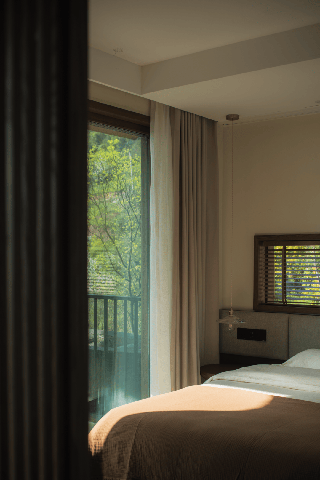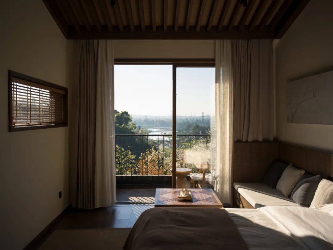 - 室内极少装饰,仅以素壁、原木与麻质软装营造冥想氛围,引导住客回归内在宁静。