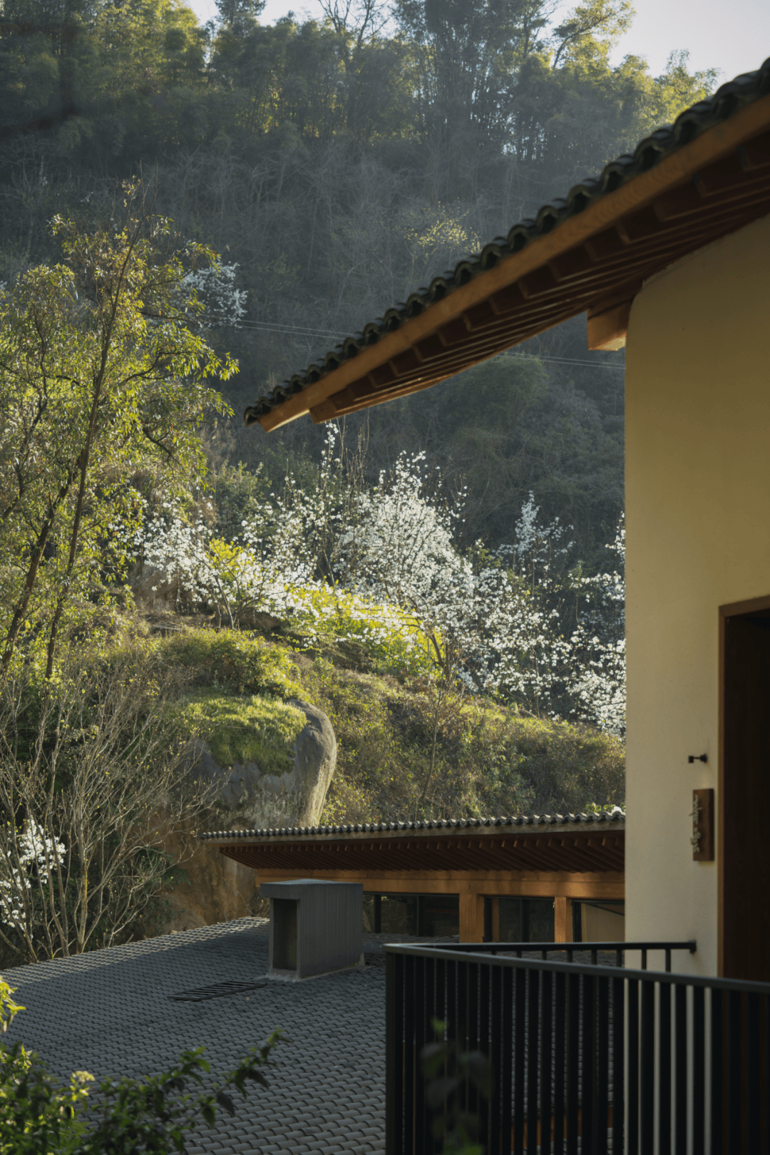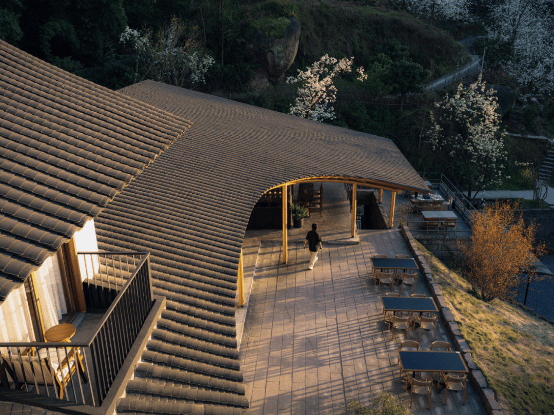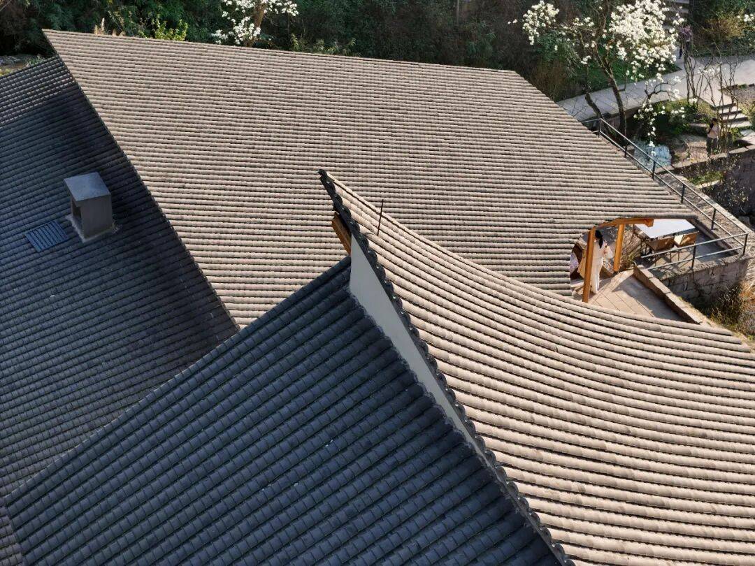 - 屋顶覆以深灰色陶瓦,延续川地民居的坡顶意象,同时优化排水与隔热性能;