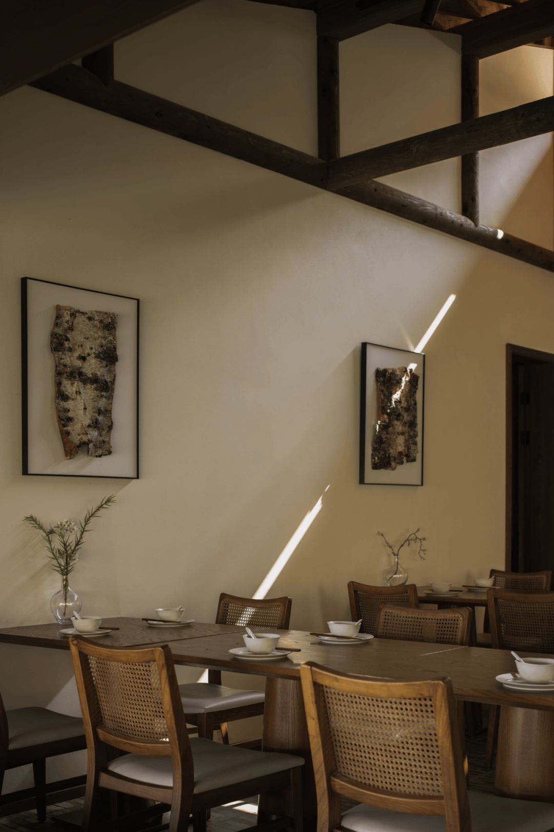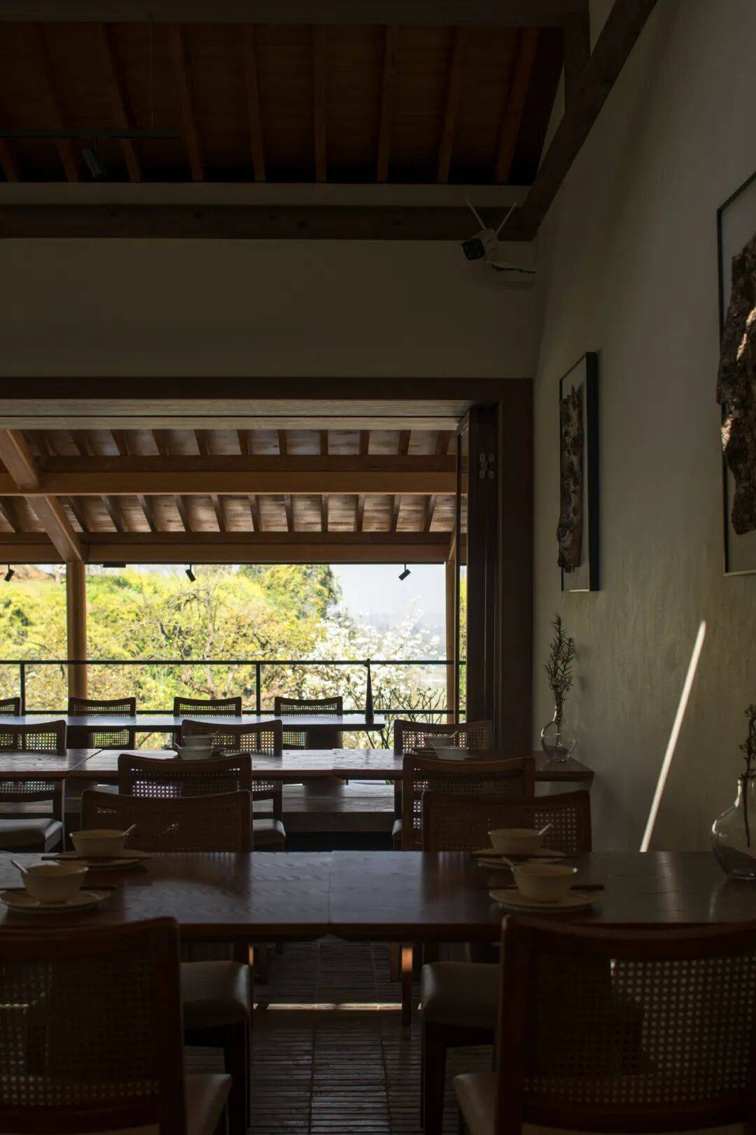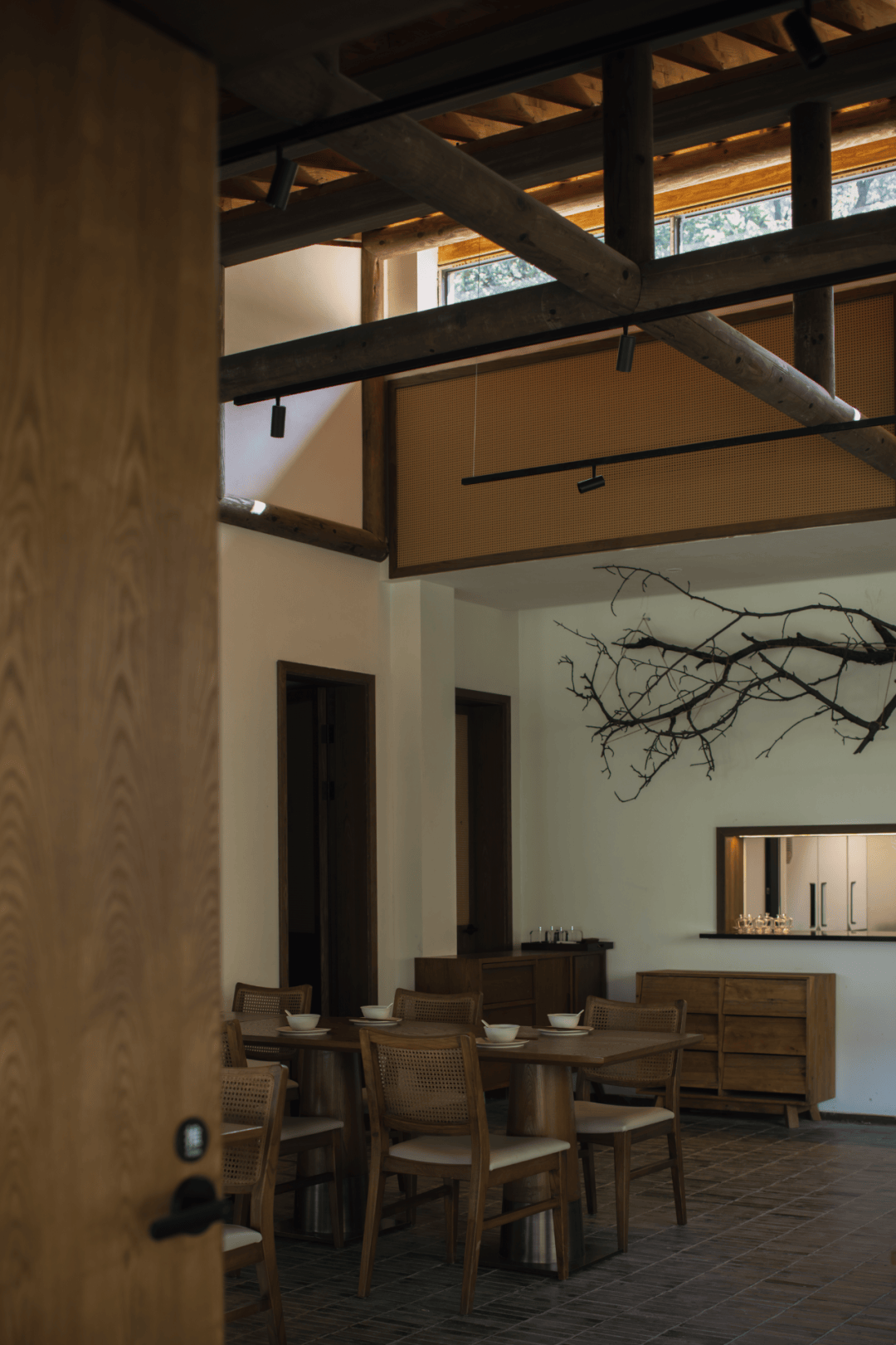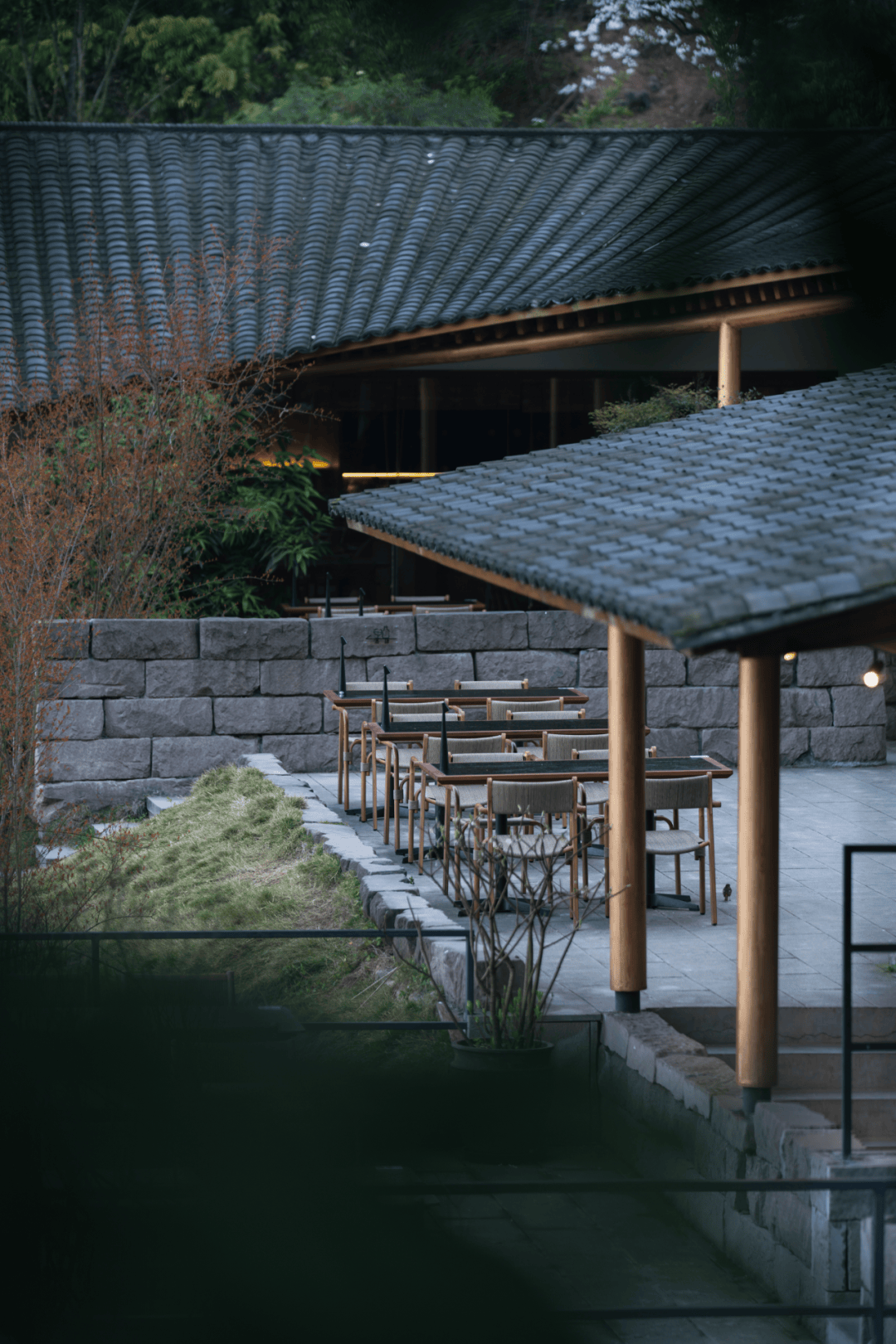 - 室内地面铺设手工烧制青砖,部分家具由老梨木回收再制,赋予空间生命轮回的象征意义。