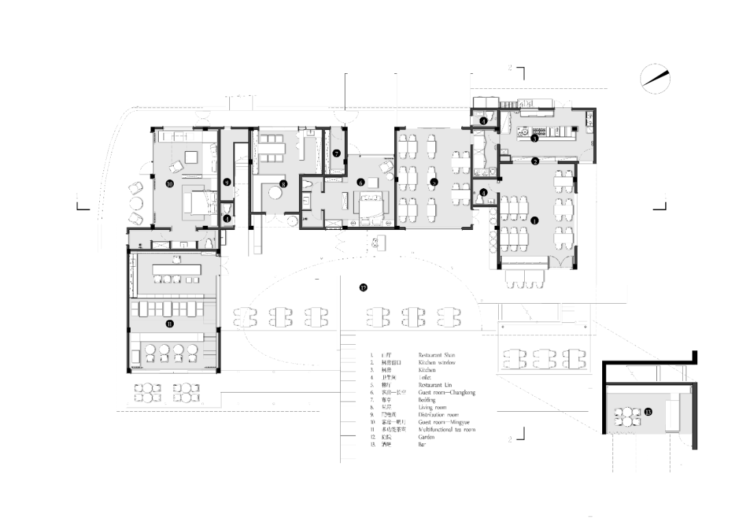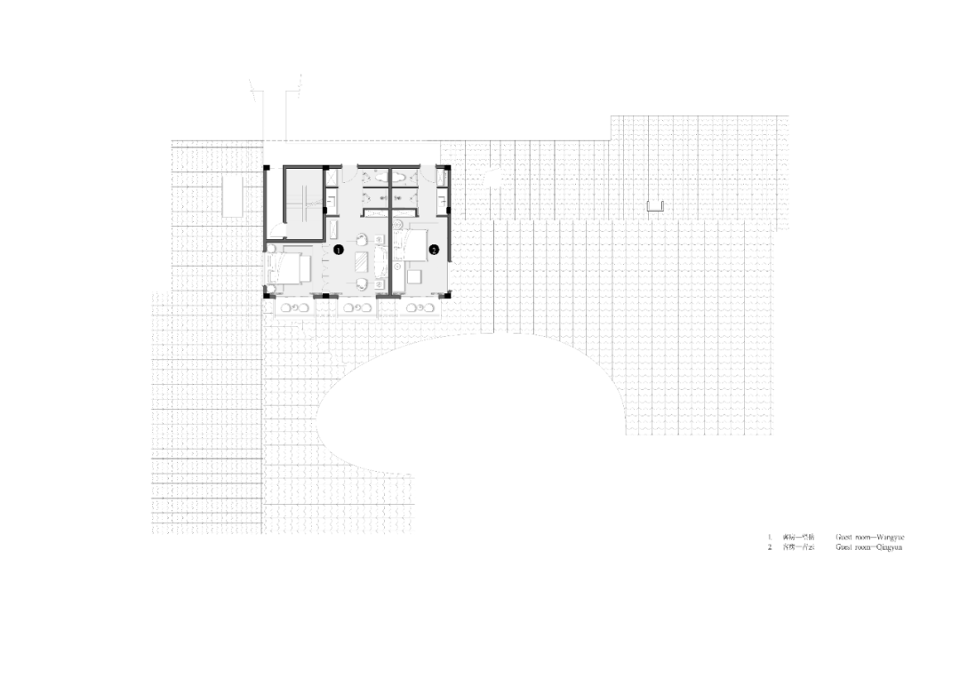 两座客房均围绕内院组织空间,形成“外闭内敞”的禅意格局: