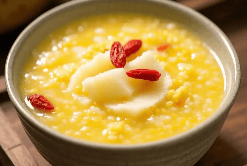 山药外号“神仙之食”,立冬前后最养人。买那种“铁棍山药”,蒸着吃、煮着吃、熬粥吃都行。推荐“山药小米羹”:小米淘净,水开后下锅,小火熬10分钟,再把去皮切块的山药倒进去,继续熬20分钟,米油熬出来,山药化成小段,入口即化。早晚一小碗,脾胃舒坦,夜里不起夜。