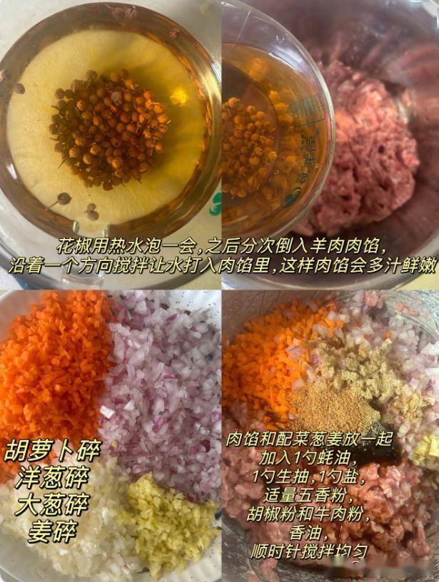 - 食材搭配:羊腿肉末250g、胡萝卜1根( grated细丝)、洋葱半个、姜末少许