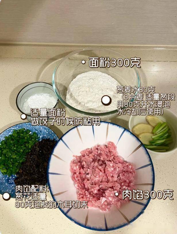 - 食材搭配:猪前腿肉300g(肥瘦3:7)、大白菜半颗、姜末10g、葱花适量