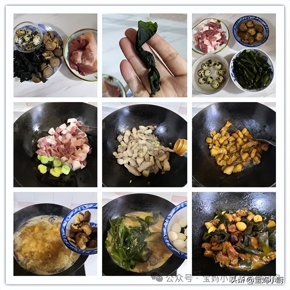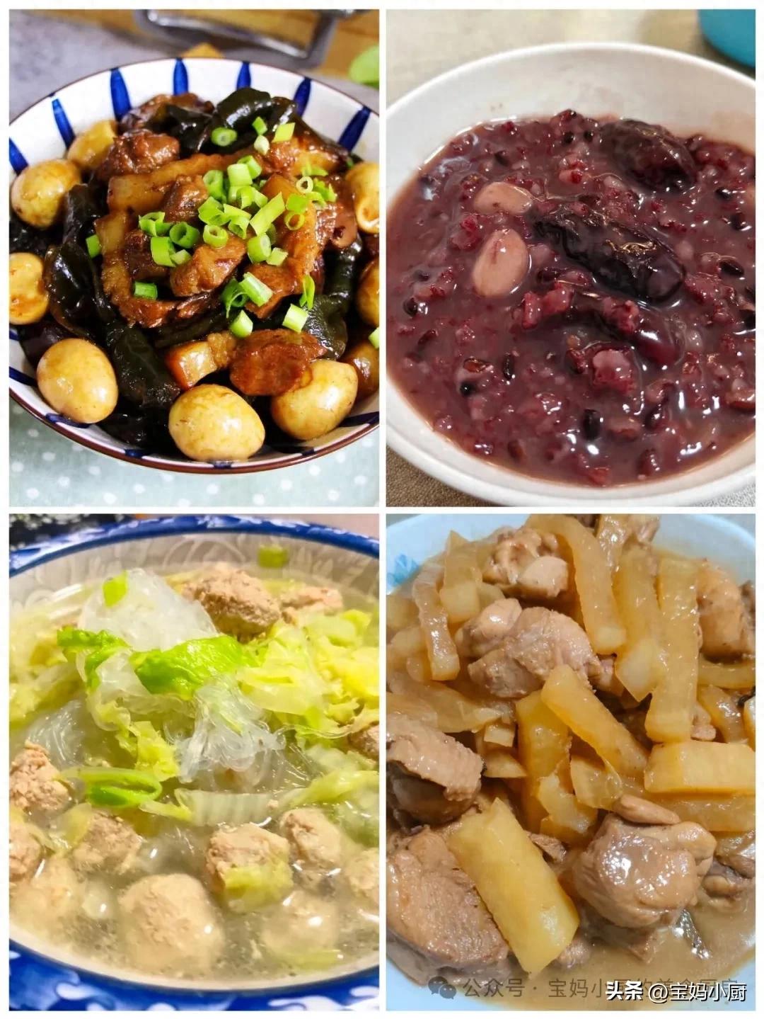 进入到11月,天气寒冷愈加明显,这时候除了穿衣保暖之外,饮食也是很重要的一部分。 冬季御寒,要常吃一些温热的食物,核心食材可选高蛋白质、高能量的,比如猪、鸡、牛、羊、鱼,再搭配一些富含碳水的根茎类食材,比如山药、萝卜、土豆等,为身体快速提供能量。再或者用杂粮和坚果煮粥吃,锁住热量。用温补驱寒暖身的美食,健健康康一冬天!我为大家挑选了4道适合冬季的美食,食材好找,做法不难,如果你不知道吃啥,不妨参考一下~第一道;【海带炖肉】 具体做法:1,需要准备的食材:带皮肥瘦猪肉,干海带结,鹌鹑蛋,干香菇2,3,把海带结加温水泡软洗净;香菇加开水浸泡至软,洗净;鹌鹑蛋煮熟,加凉水过凉,去皮;肥瘦猪肉切长条块4,炒锅里加植物油,放葱姜八角炒几下,倒入猪肉中大火煸炒 5,炒到肉变色,顺锅边淋入料酒翻炒去腥6,加入生抽和老抽,给肉块炒上颜色7,倒入没过食材的开水,倒入香菇,炖25分钟8,倒入海带结和鹌鹑蛋,加盐调味,盖上盖子接着炖20分钟9,肉软烂可口,加点蒜末拌匀提味,关火出锅第二道:【白菜汆丸子】 具体做法:1,准备食材:叶多的白菜,粉丝泡软,肥瘦猪肉馅,葱姜水2,把白菜切粗丝,加水洗净3,把肉馅入盆,加葱姜水、磕入2个鸡蛋,加花椒面、胡椒粉、盐 4,用筷子顺着一个方向用力搅,直到上劲有阻力,再托起摔打几次5,煮锅里加水,放葱姜烧开锅,转小火,做肉丸下锅,微小火煮到肉丸子熟透飘起,捞出来待用6 ,大火烧开锅,撇干净浮沫,倒入白菜烧开煮熟7,倒入粉丝煮一会,加盐、胡椒粉调味8 ,再把肉丸子下锅煮开,关火出锅第三道:【鸡肉萝卜炖土豆】 具体做法:1,需要的食材:鸡腿3个,白萝卜,土豆。把鸡腿剁成块,洗去血水,攥水待用2,萝卜洗净去皮,切条。土豆去皮洗净,切比萝卜条粗的条3,炒锅里加植物油,放2个八角炸香 4,放葱姜炒几下,倒入鸡块炒变色,菜汁清亮,顺锅边淋入料酒翻炒去腥,加酱油炒上颜色5,倒入没过食材的开水,大火烧开,盖锅盖炖15分钟6,倒入土豆萝卜条,加盐调味7,再炖十几分钟,土豆萝卜软烂合适,关火出锅第四道:【山药黑米花生粥】