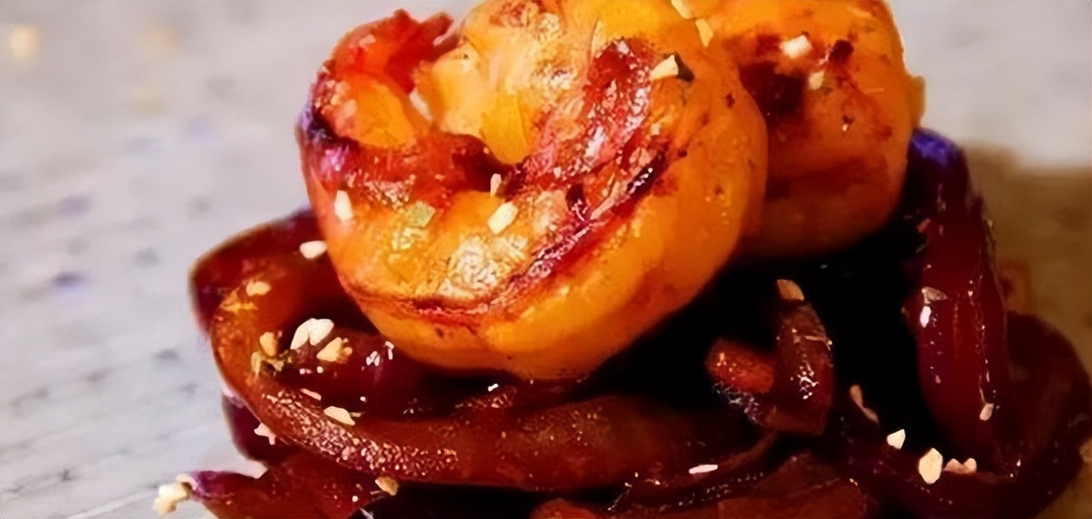 材料:虾、洋葱、红酒、盐、黄油 做法:1、将虾洗净后去壳去虾线,控干水分。洋葱对半切开,剖面向下,切成细丝。 2、黄油块下锅,中火,融化后将虾下锅,分别将两面煎至变色,盛出备用,不要煎太久,一面变色就翻面,另一面变色之后就出锅。最好用黄油做,味道会比较香,将虾提前煎一下,一来是吸收了黄油的味道比较香,二来是虾比较大,提前煎一下,后续在做的时候才不会因为需要长时间炒制而变老。 3、同一口锅,再放入一些黄油,大火,等黄油融化后,下洋葱丝。 4、翻炒至洋葱略微变黄,边缘有点透明。 5、放入之前煎好的虾,翻炒几下,沿着锅边倒入(不要直接倒在菜上)一大勺、约15ml红葡萄酒,根据自己口味加盐调味,翻炒几下,至汤汁全部收干即可出锅。 辣子鸡丁