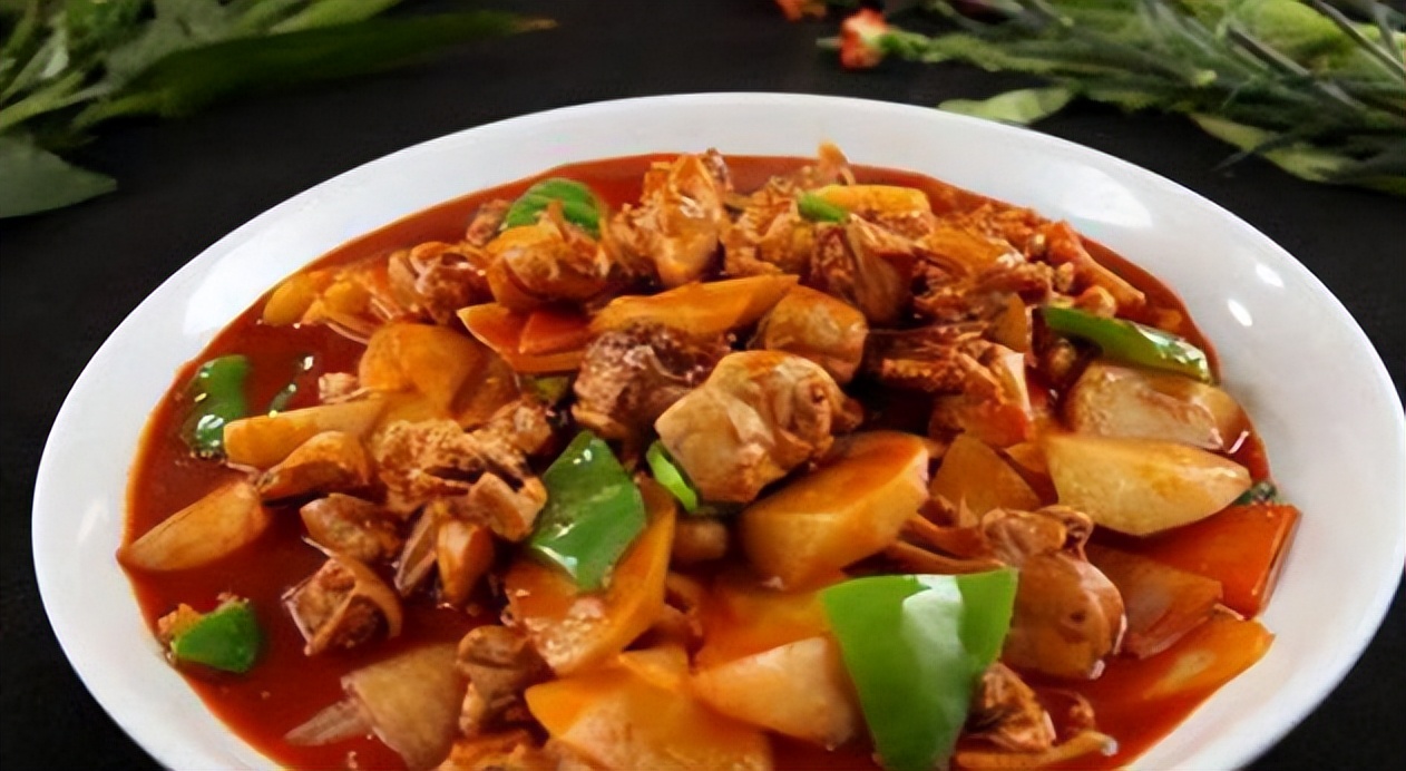 做法1.鸡腿剁成小块;土豆切成滚刀块;彩椒青椒切菱形片;葱段姜片备好 2.鸡块用开水焯一下,撇掉浮沫,盛出沥干水 3.热锅热油,加一勺豆瓣酱,煸出香味后倒入彩椒片 4.鸡肉块和土豆块也一起倒入,翻炒均匀,加点生抽 、没过鸡块的凉开水小火炖10分钟,出锅前放点小粒冰糖 5.冷水和面,醒发半小时后,擀成大而薄的面皮,对折切成皮带面,入开水中烫熟,浸一下冷开水捞出沥干,平铺在盘子底部 6.炖好的鸡块连汤带菜一起倒在面条上,拌一下就可以了 鱼香冬瓜