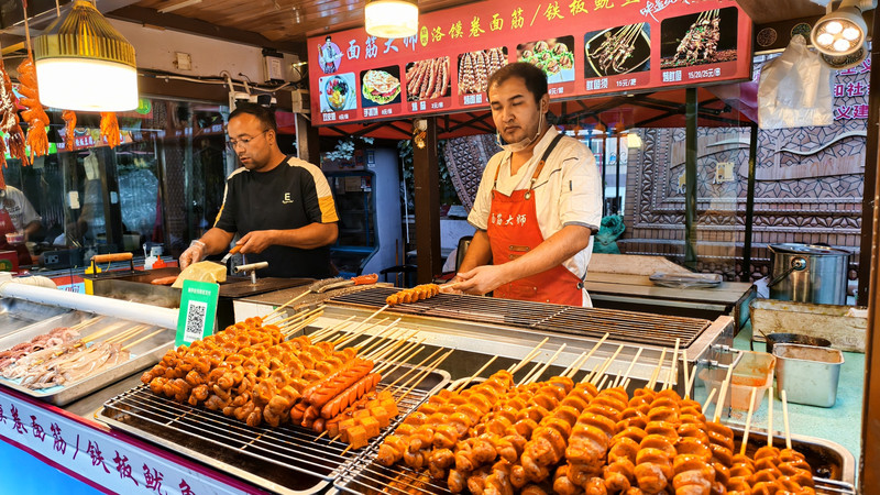 喀什古城作为世界文化遗产,以其保存完好的维吾尔族传统建筑、民俗文化闻名。这条夜市街是游客体验新疆夜经济、感受丝路文化的核心区域之一,夜晚的灯光不仅点亮了街道,更勾勒出喀什 “活着的千年古城” 的独特魅力,让游客在光影中沉浸式感受西域的历史与风情