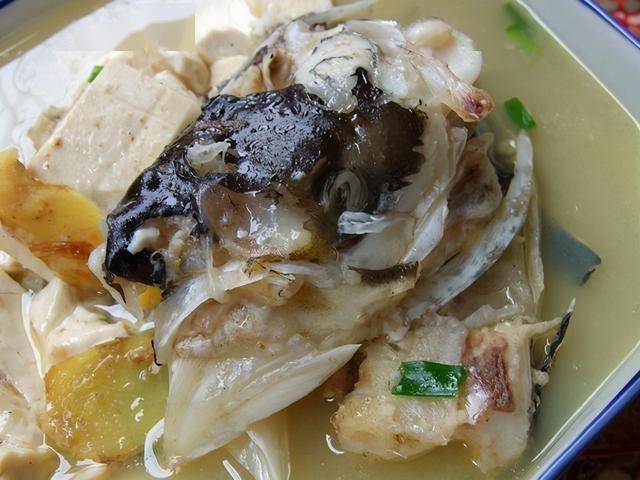 食材:鲢鱼头1个 嫩豆腐数块 姜片适量 葱少许 白胡椒适量 盐适量 油少许