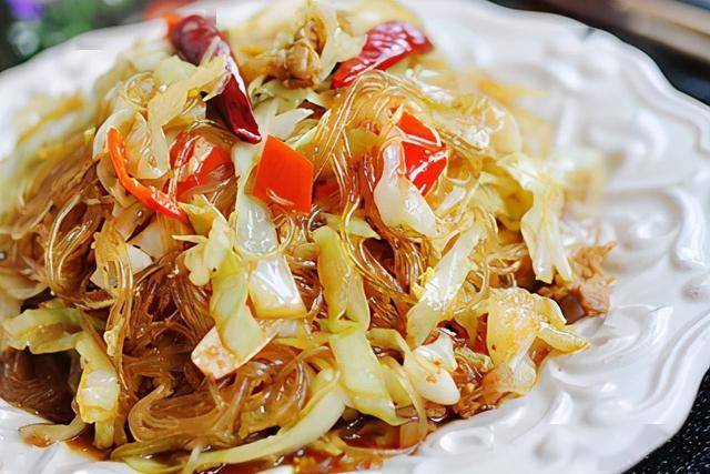 做法:1、卷心菜洗净切丝、粉条泡软;