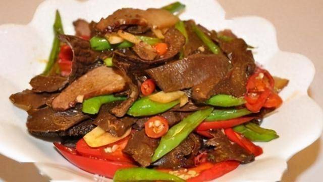 6、 放猪耳朵、翻炒片刻