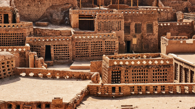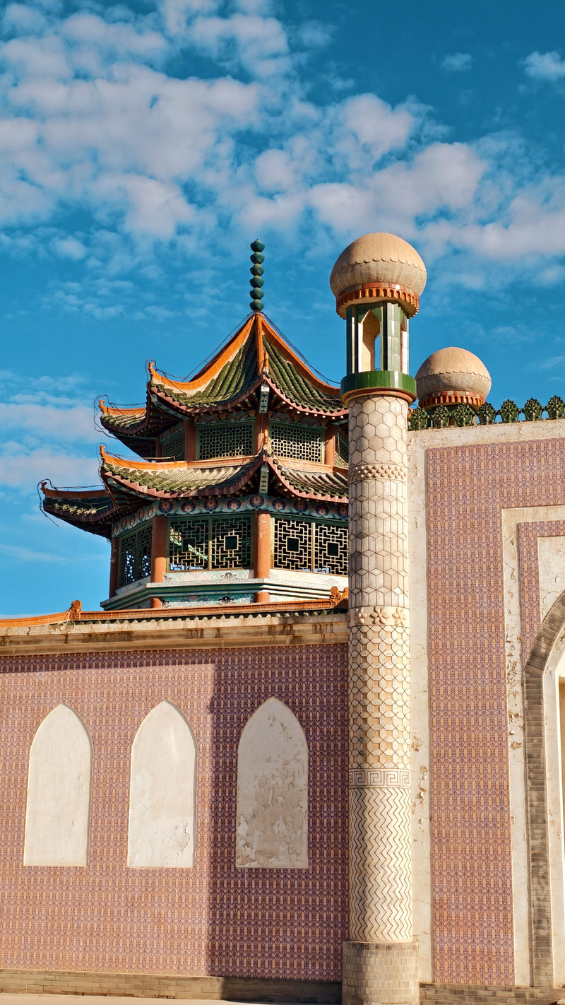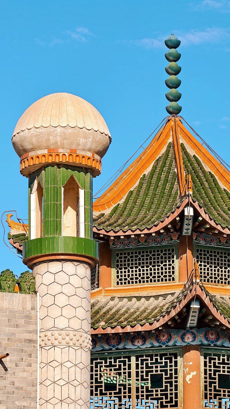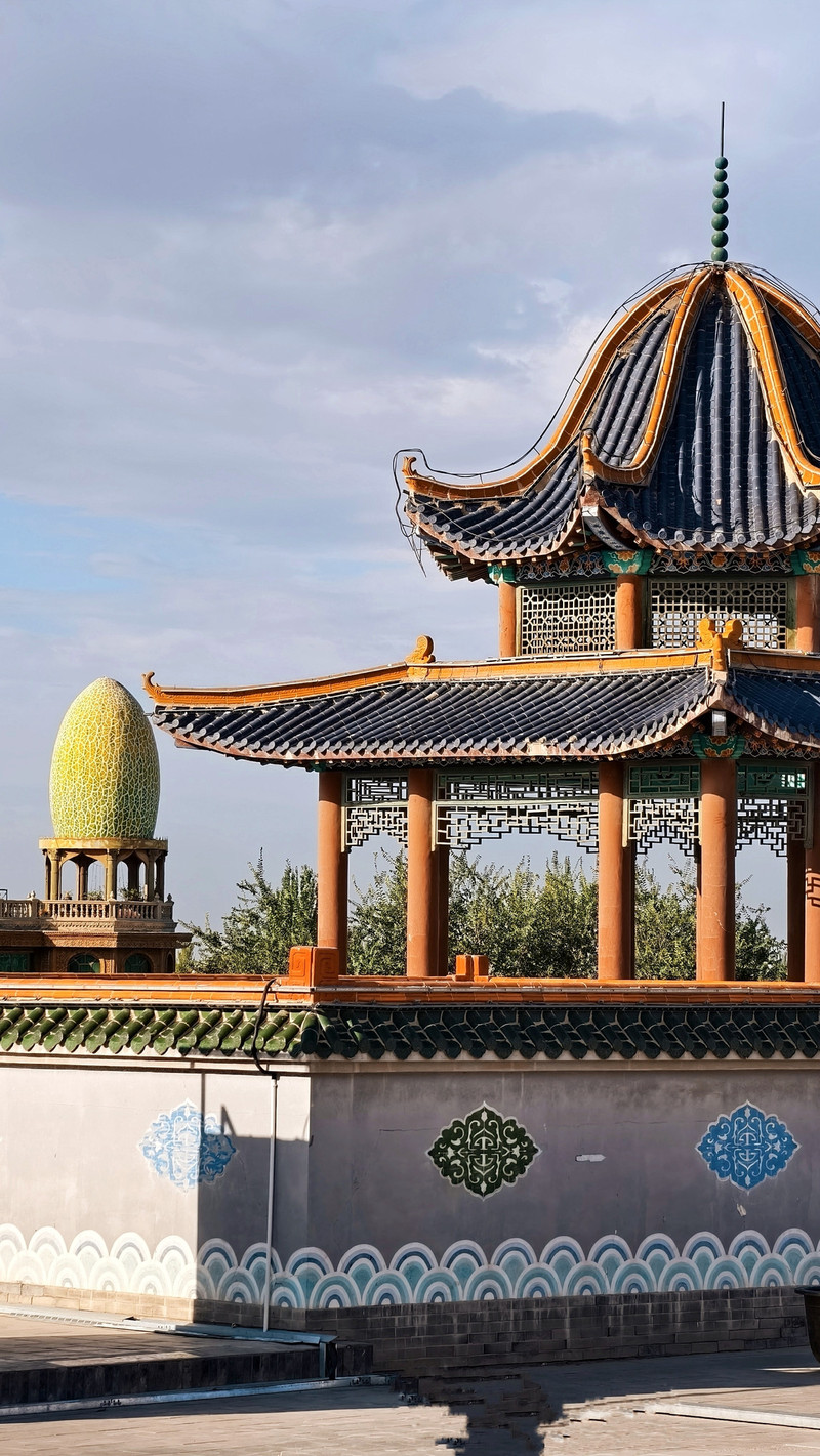 吐峪沟麻扎村:火焰山峡谷中的生土古村落,伊斯兰圣地与佛窟共存,黄昏时登上霍加木墓俯瞰赤壁中的蓝绿色清真寺圆顶。
