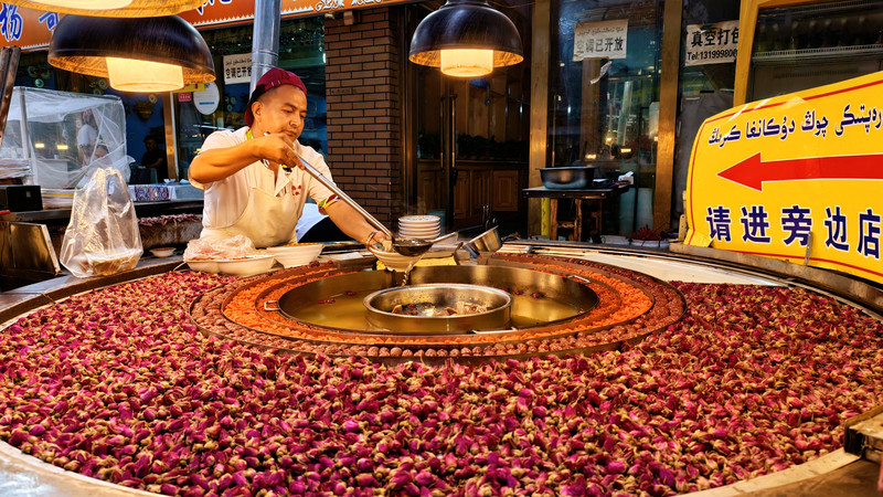 味觉记忆:和田夜市烤鹅蛋蘸皮亚曼石榴酱,吐鲁番“阔尔达克”羊肉焖饼配冰镇穆塞莱斯。
