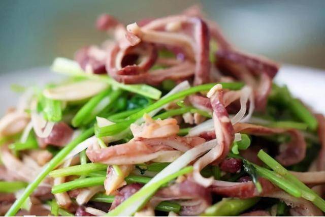 牛肉切片滑油,与大量葱白段爆炒,用酱油、糖快速调味。葱属辛温,能通阳散寒,搭配牛肉更添能量。