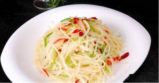 做法:1.将洗净去皮的佛手瓜切成粗丝,装在盘中;