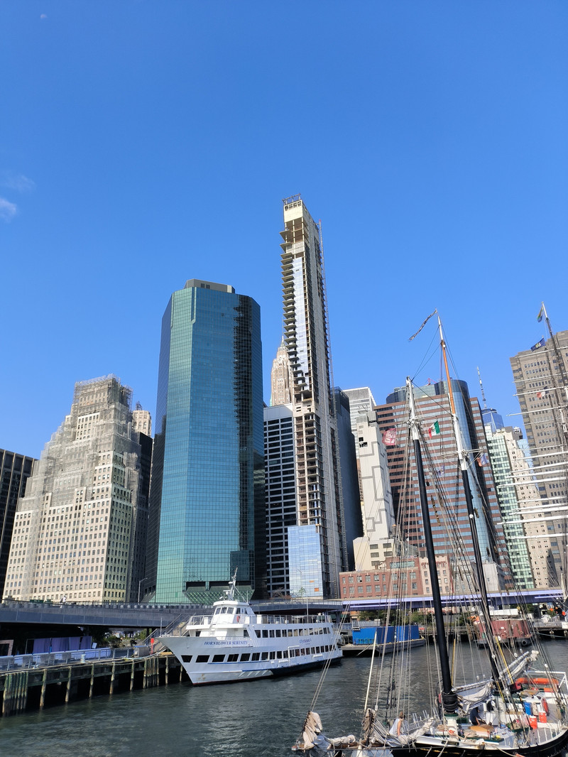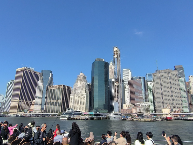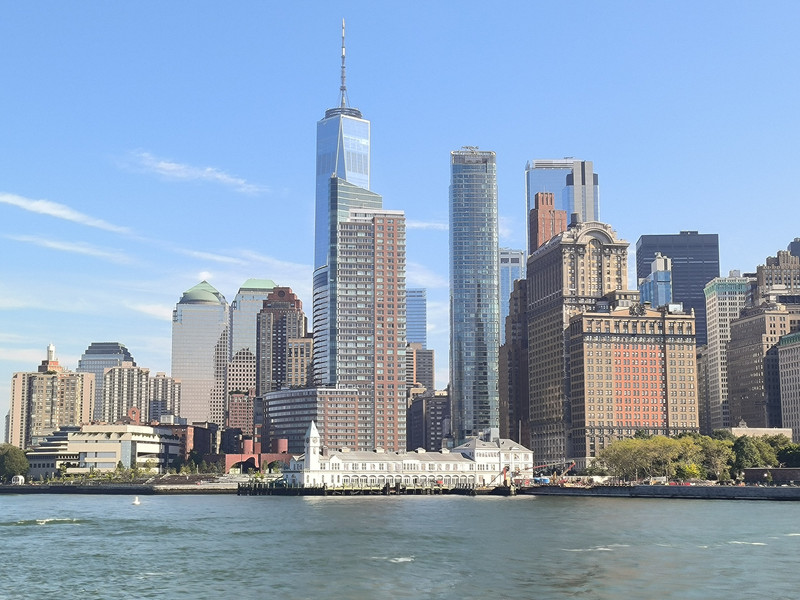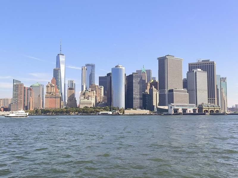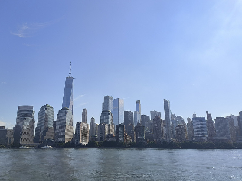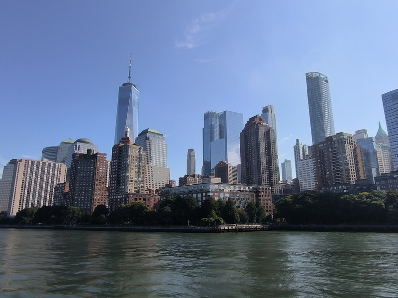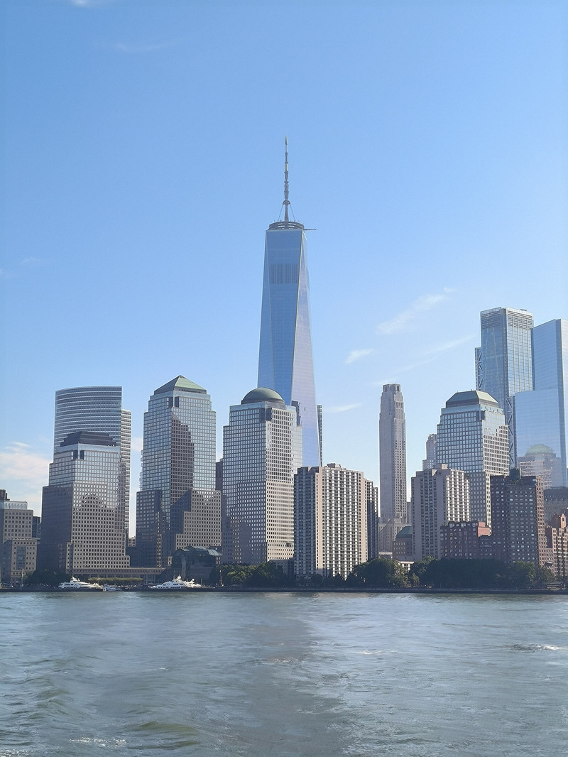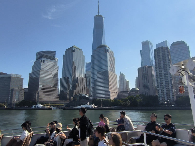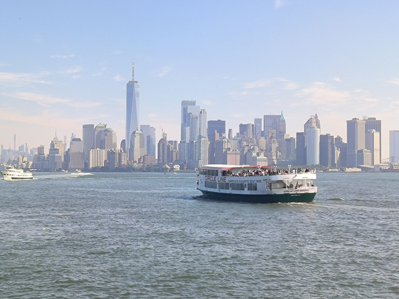 游船穿过布鲁克林大桥后再转头南下,游览曼哈顿岛上林立的高楼群,其中最高的541米自由塔引人注目,此塔是在“911”恐怖袭击中导塌的世贸中心废址上建立,是美国也是西半球最高的建筑之一,于2013年主体竣工,取代了原世贸中心双塔的地位,并比原来的北塔还高了124米。