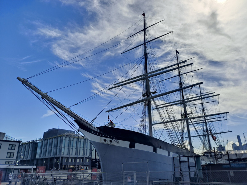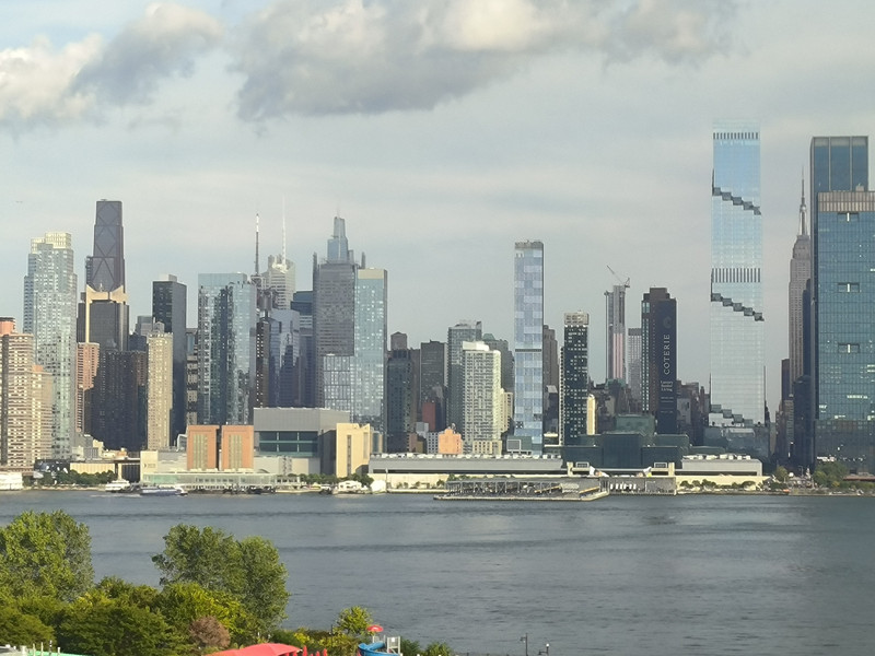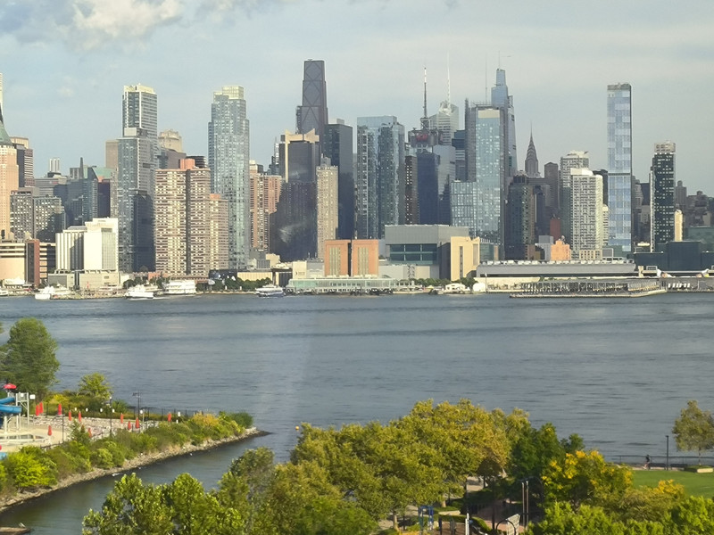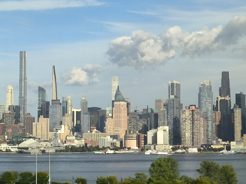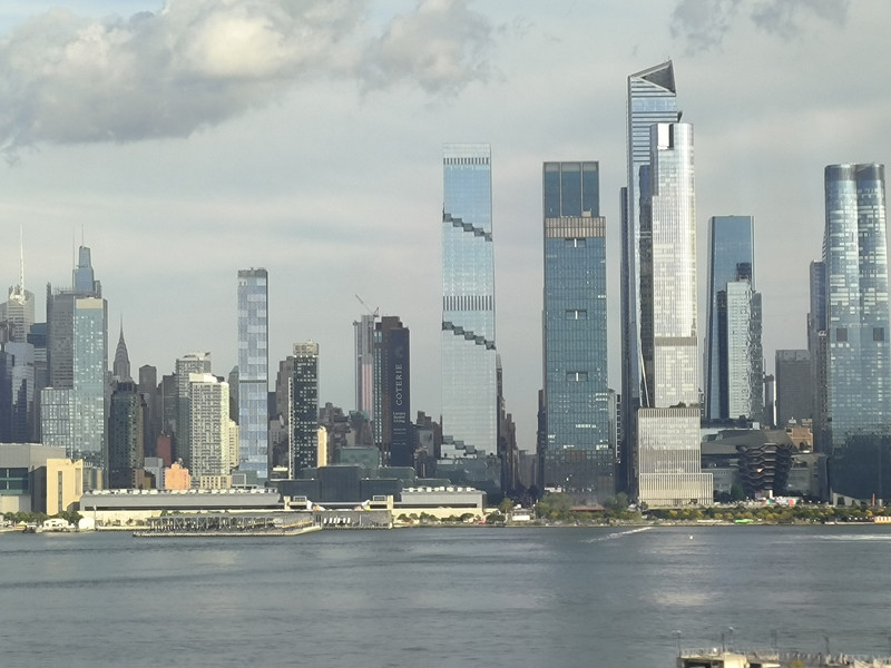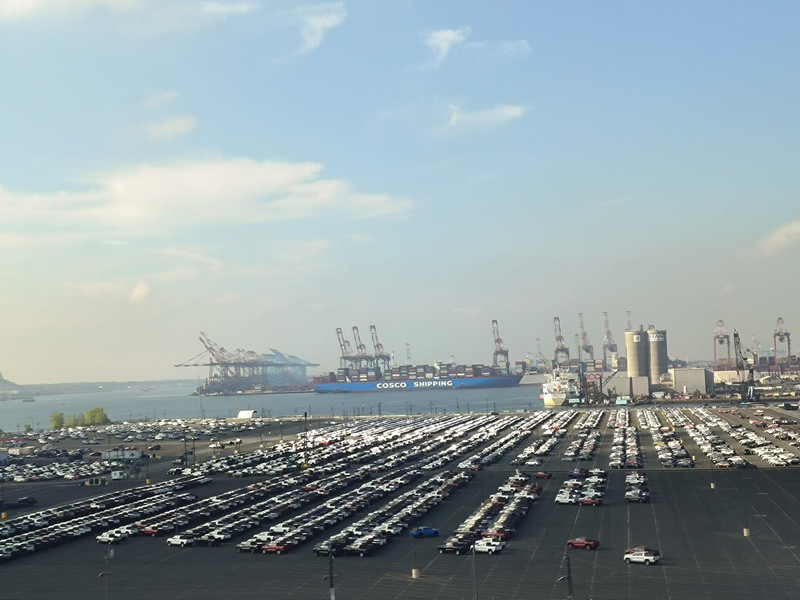 赴纽约途中(可见港口中我国的中远海运货轮)