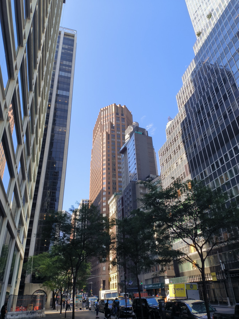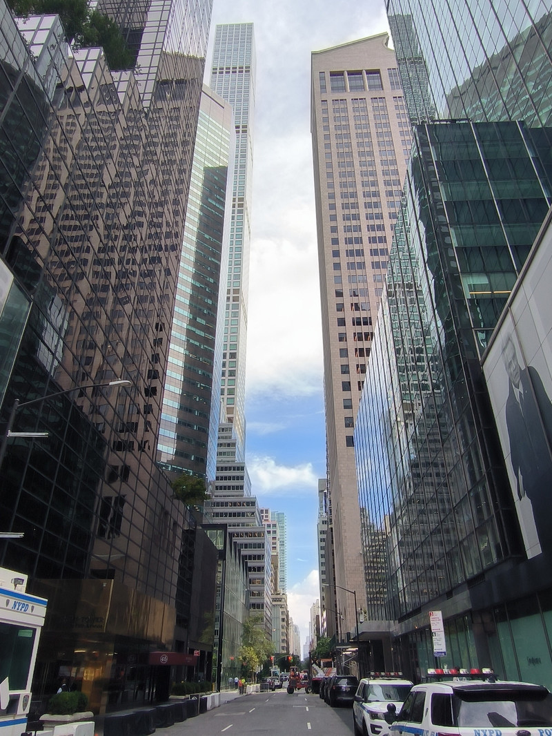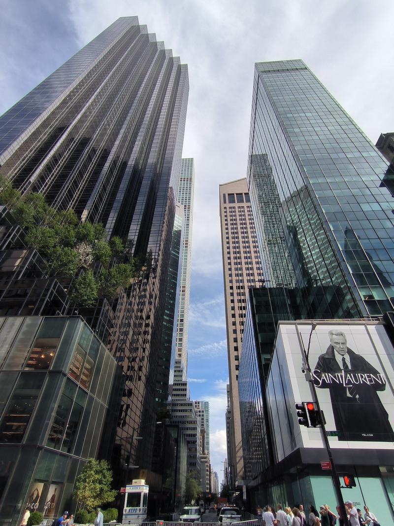 进入20世纪后这里成为摩天大楼“争高”的场所,从第五大道向两侧延伸不少横街,美国城市南北向的路称为“道”,东西向的路称“街”,这些横街按阿拉伯数字编号命名,虽然不宽但也是高楼林立,有的甚至超过第五大道本身,据说纽约曼哈顿是世界上高楼最密集的地方,每2.6平方公里聚集100米以上摩天大楼超过600栋。