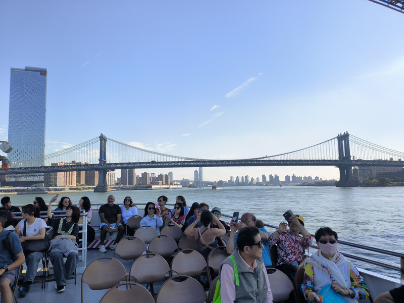 游船从桥下穿过(远处是曼哈顿大桥)