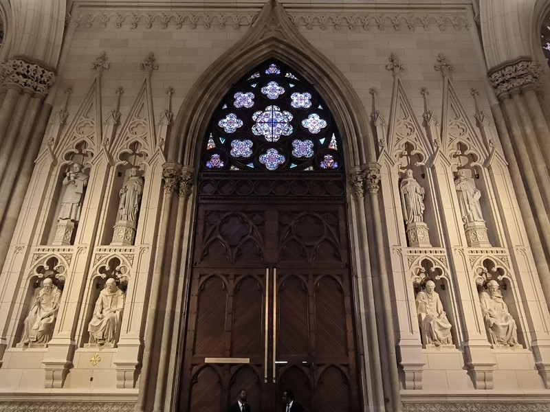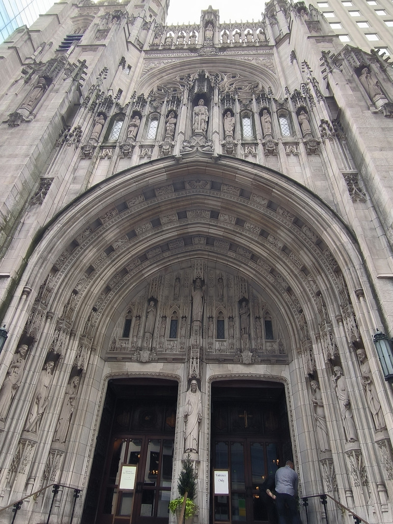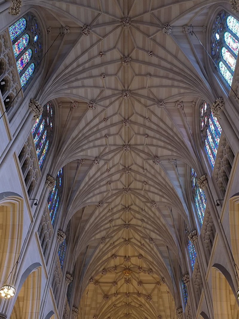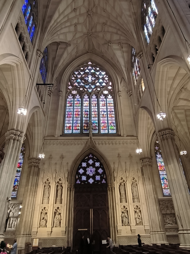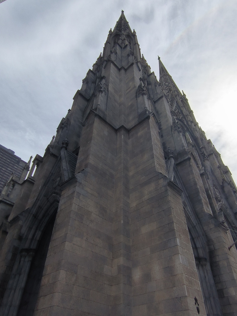 第五大道上也有多座教堂,其中圣帕特里克大教堂是纽约市乃至全美的标志性天主教堂,外型仿德国科隆大教堂设计,1888年建成,哥特式建筑风格,高达100米,为纽约最大天主教堂,外部装饰华丽,内部空间宏大,拥有长100余米纵深,彩绘玻璃窗和雕刻天花板工艺精湛。
