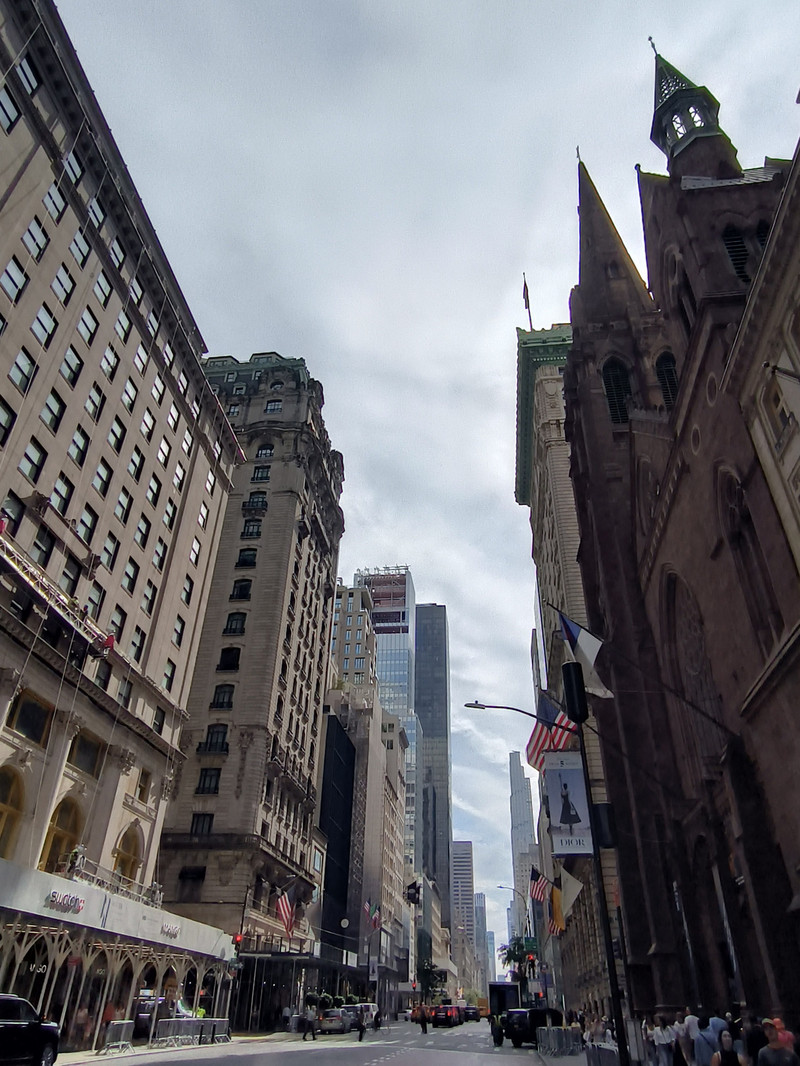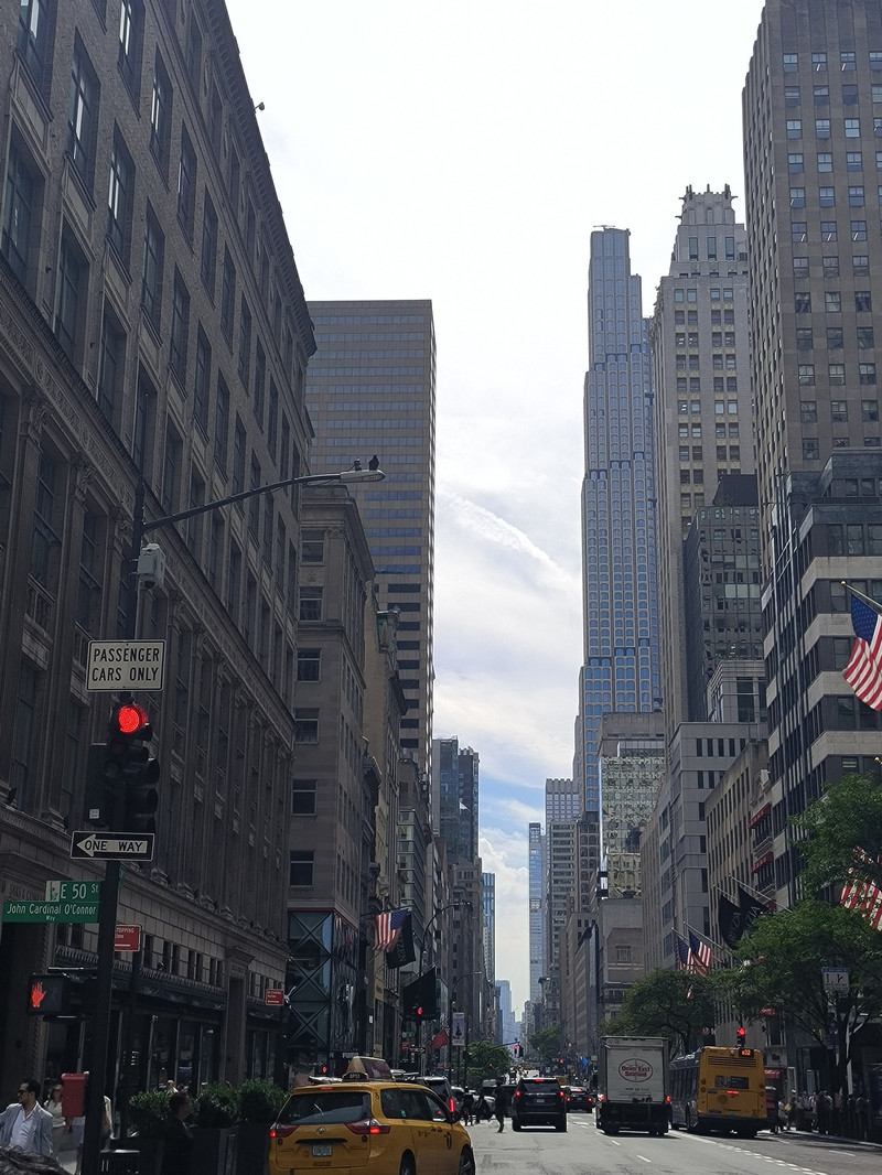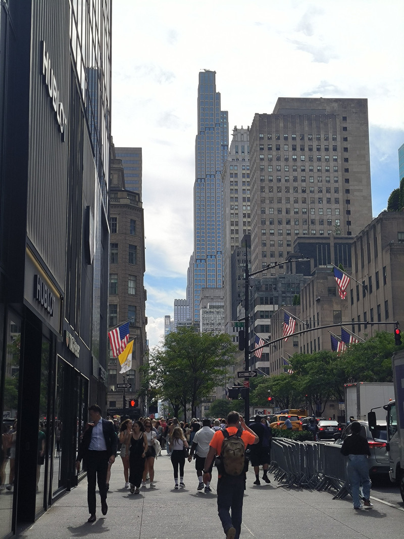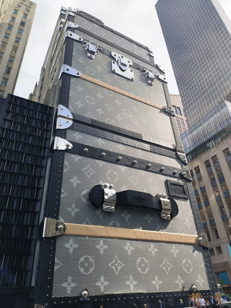接下来去著名的第五大道 — 曼哈顿的中轴线,其南端起点是华盛顿公园,北端终点为中央公园,全长约10公里,我们在洛克菲勒中心下车,左拐向北过10条横街,只走了北段1.7公里,这里是纽约的中央大街,也是美国最著名的高档商业街,其特点是货品丰富、品牌齐全、高档优质,几乎拥有着全球所有最顶级的品牌,最引人注目的就是路易威登,整幢楼就是一个巨大的箱体造型,当年我在巴黎看到的也是如此。