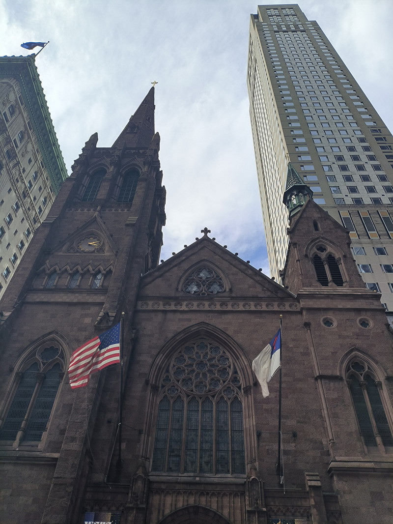 2. 三位一体教堂:始建于1698年,两次毁于大火后于1846年重建,哥特复兴式建筑风格。作为当时曼哈顿下城最高建筑,是进入纽约港船只的欢迎灯塔,如今四周摩天大楼环绕,却依然保留历史韵味,见证纽约从早期殖民地到现代大都市的演变。
